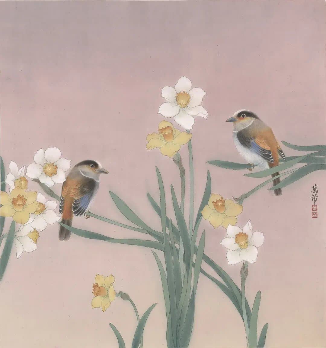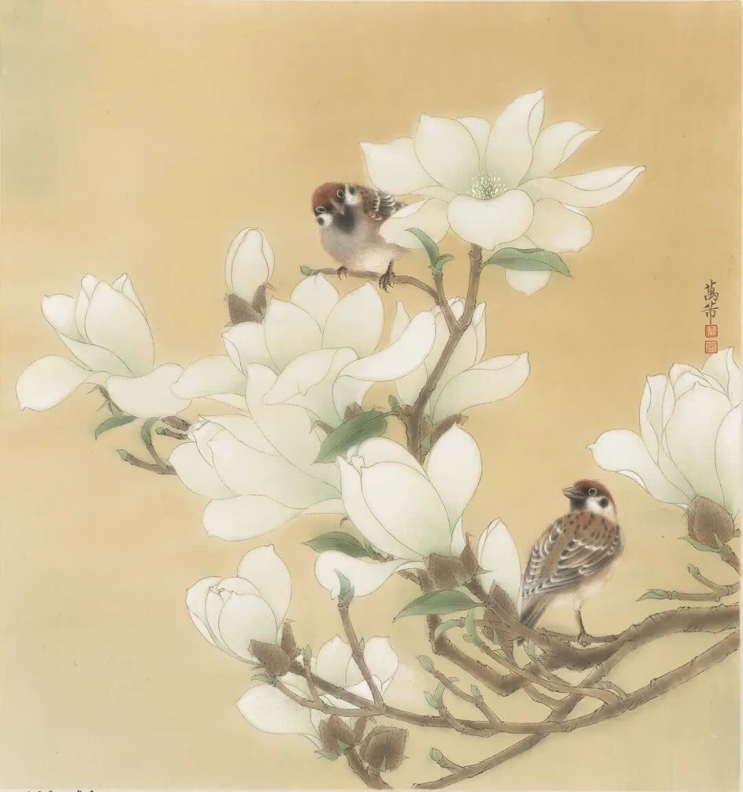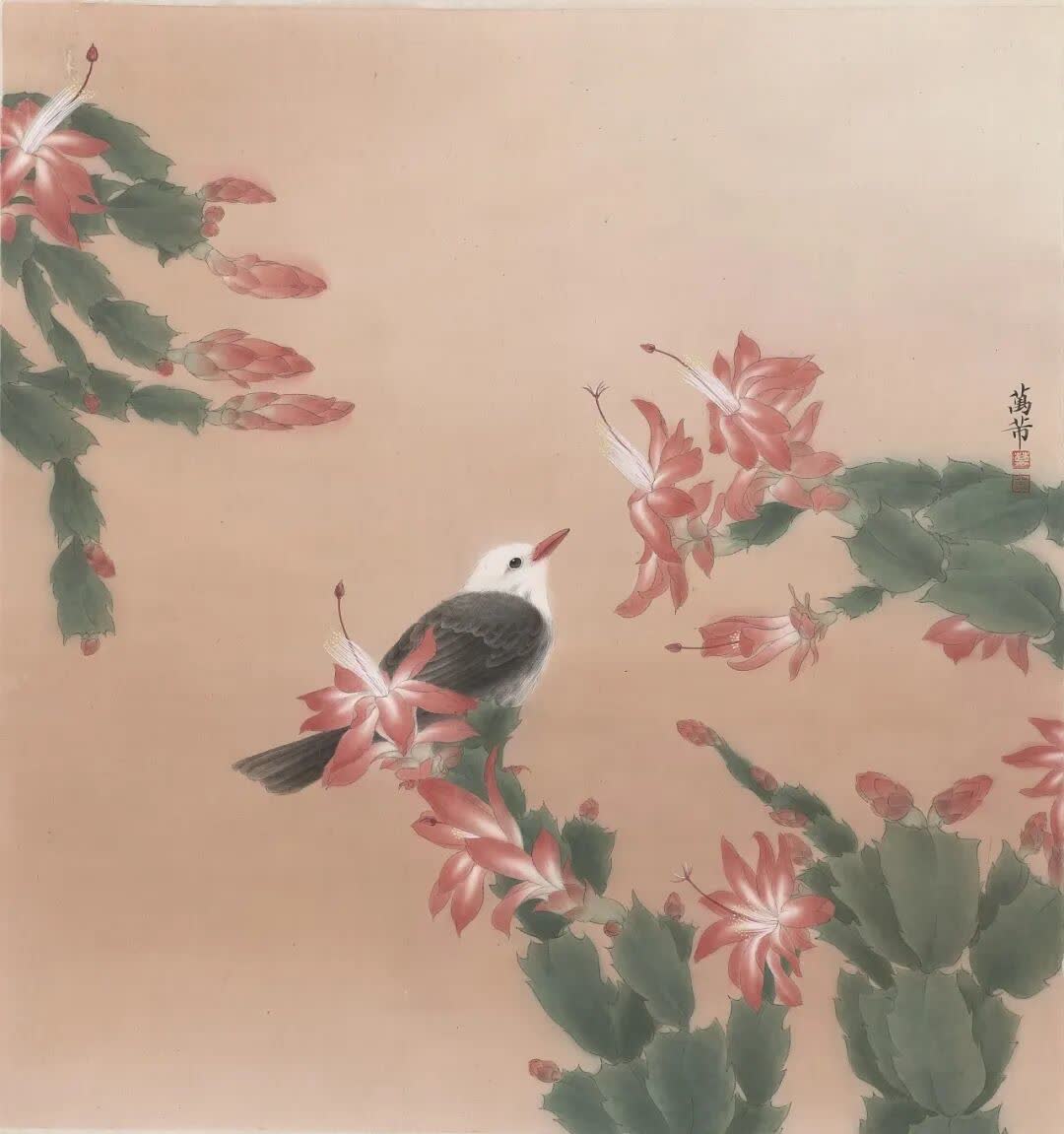 萬芾是上海實力派花鳥畫家,她筆下「花鳥世界」中的二十四節氣,作品色彩豐富,構圖現代而不失傳統韻味。