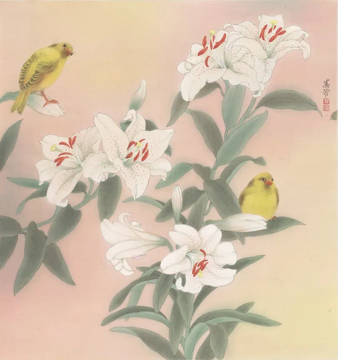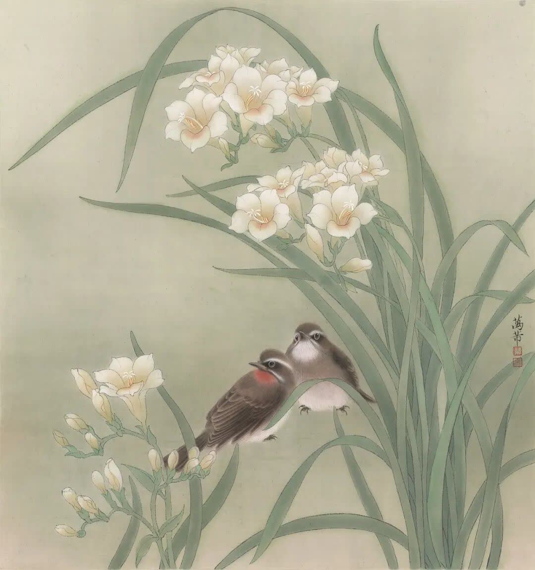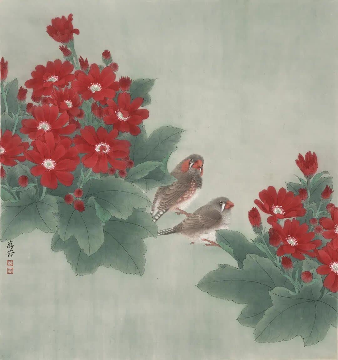 萬芾是上海實力派花鳥畫家,她筆下「花鳥世界」中的二十四節氣,作品色彩豐富,構圖現代而不失傳統韻味。