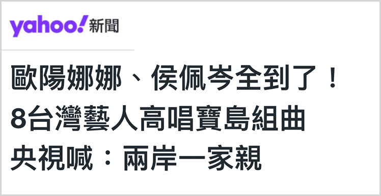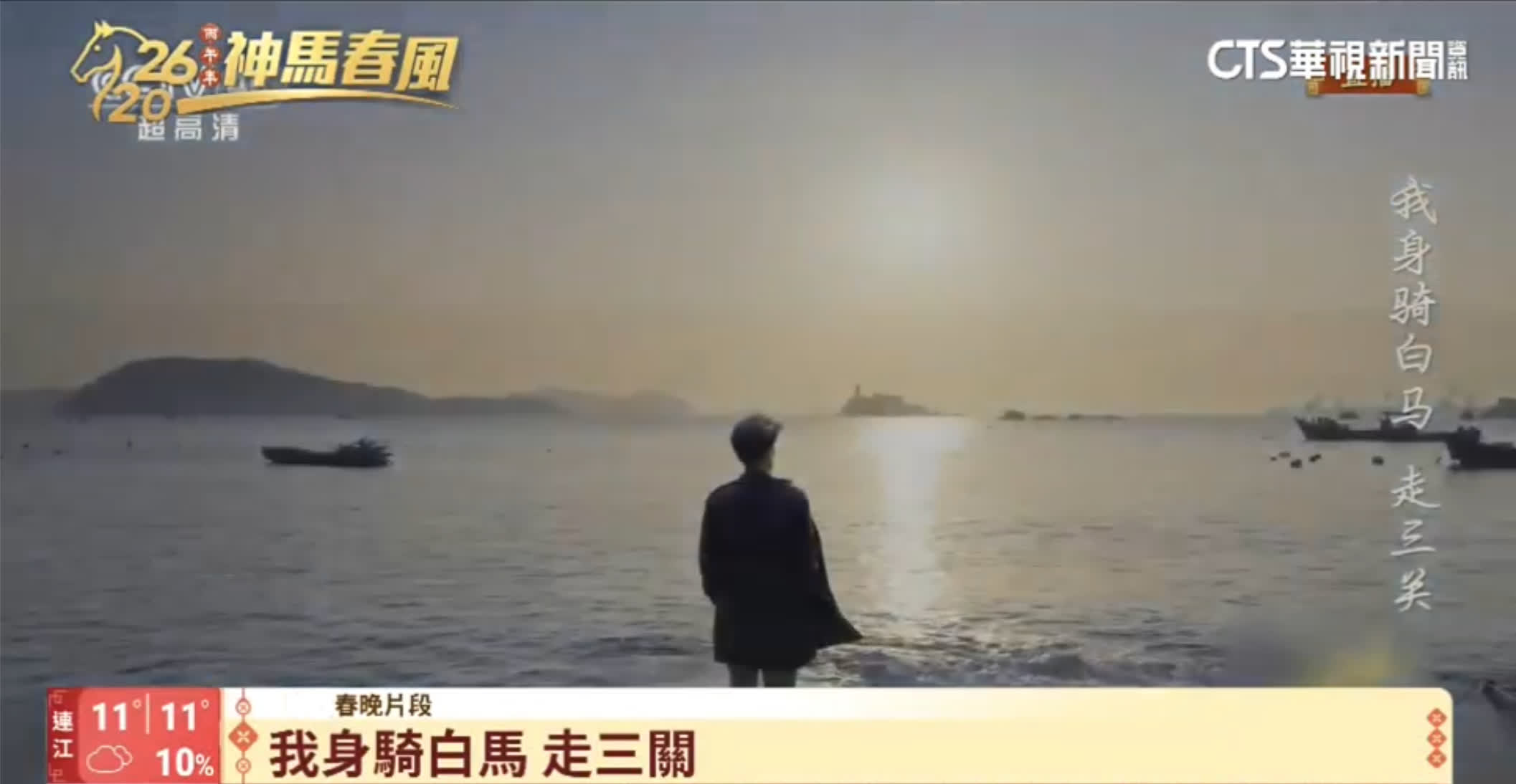 春節是中國人親情最濃最盛的節日,中時新聞網等島內媒體刊文稱「春晚唱響兩岸一家親」。華視新聞的報道注意到,伴隨着《身騎白馬》的背景音樂,台灣大稻埕等地標出現在春晚短片中,引發島內網友熱議。