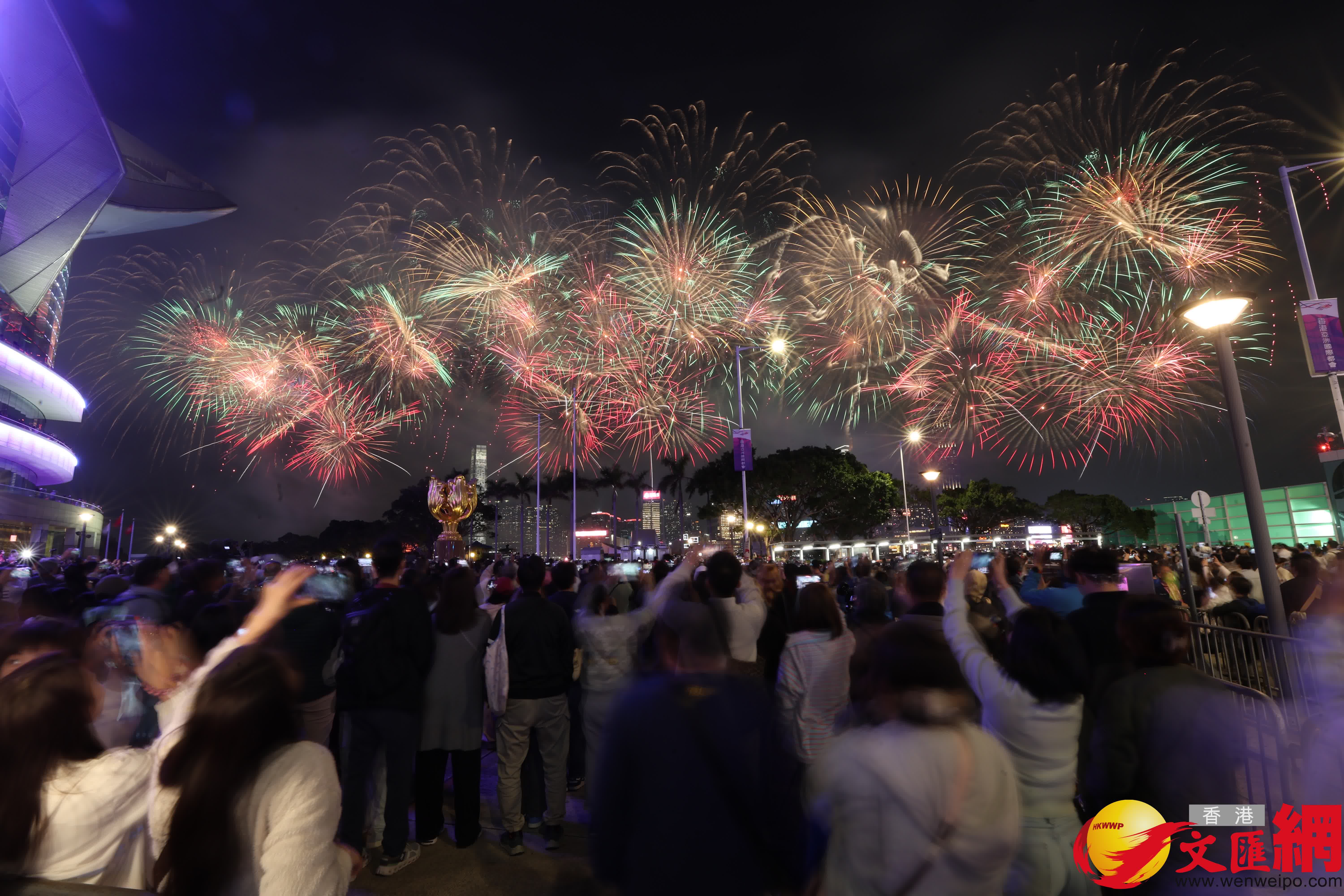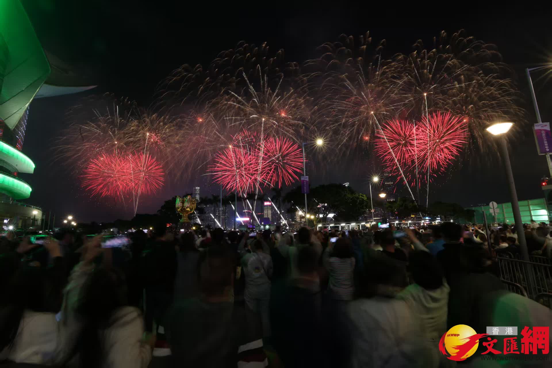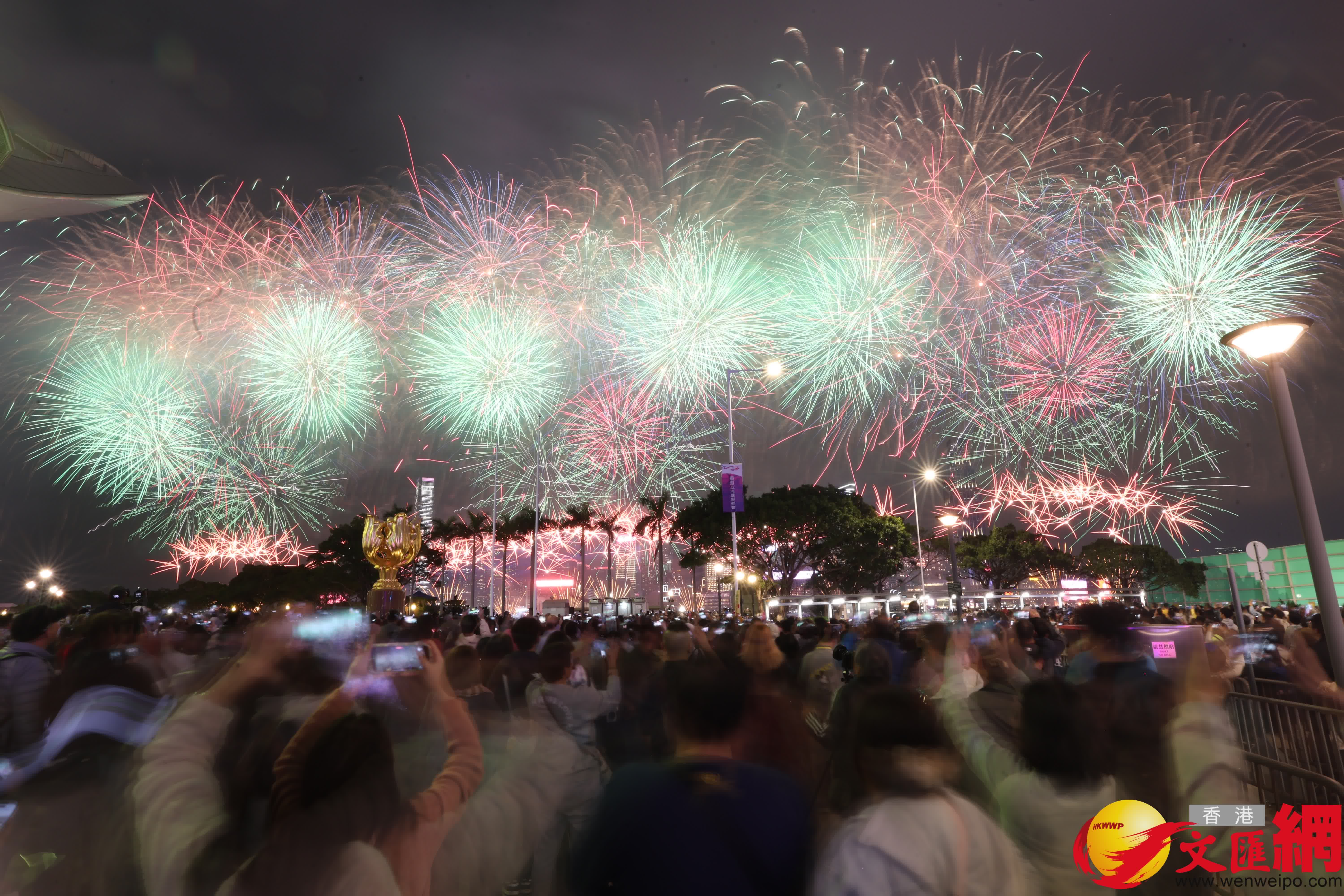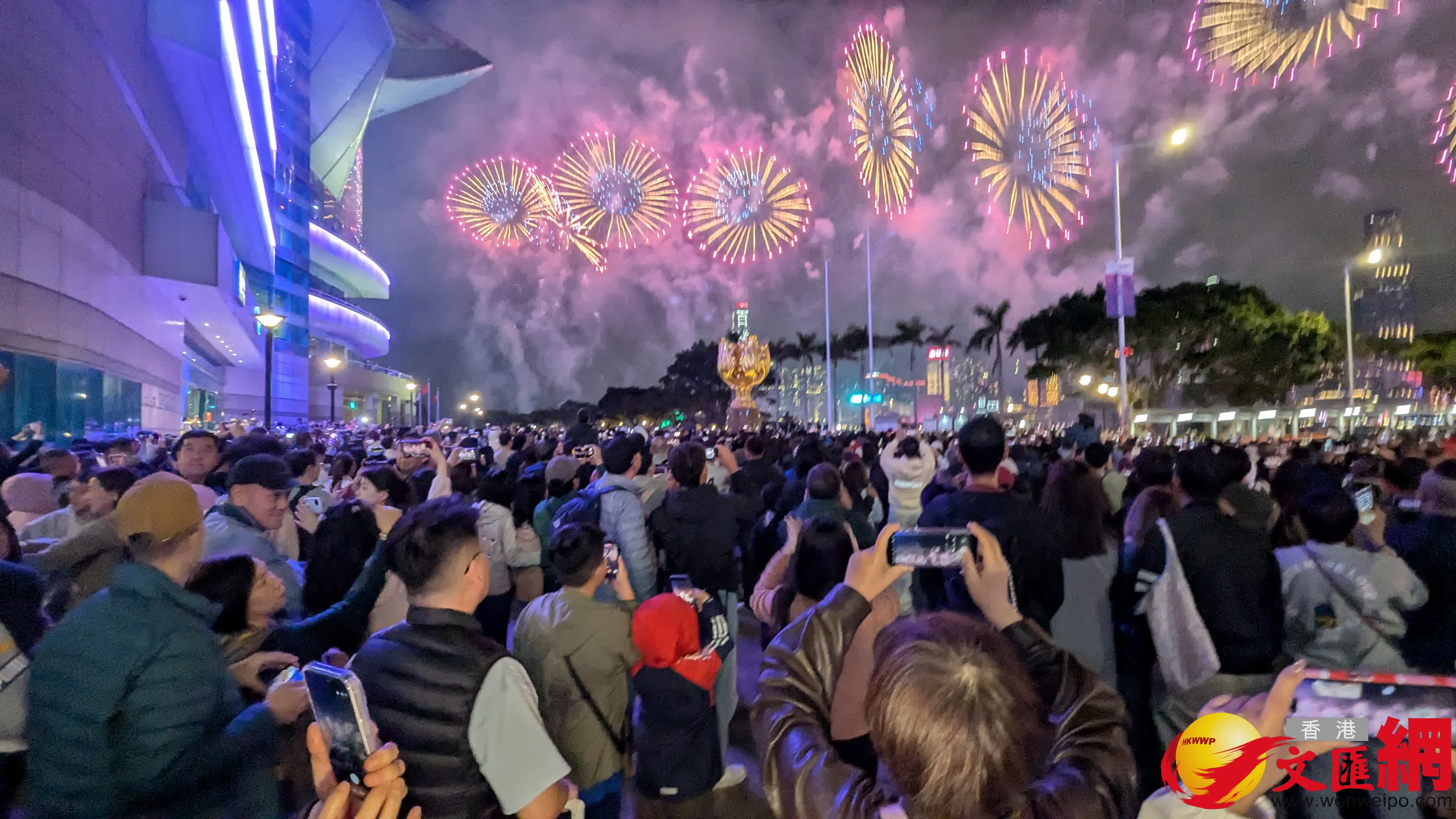 香港文匯報訊(記者 蕭景源)在維港舉行的農曆新年「馬到功成耀香江」馬年煙花匯演,今日(18日)大年初二晚上8時准時在維港上空綻放,吸引數以十萬計的市民和旅客在維港兩岸一同欣賞長達23分鐘的煙花匯演。
