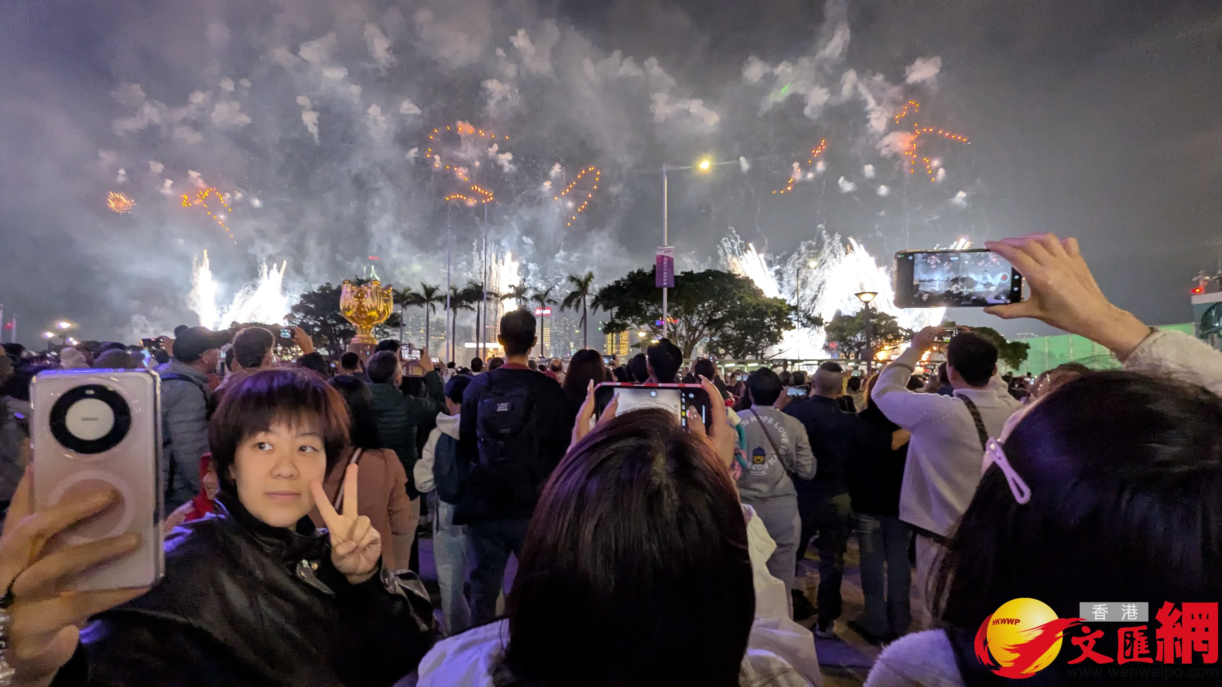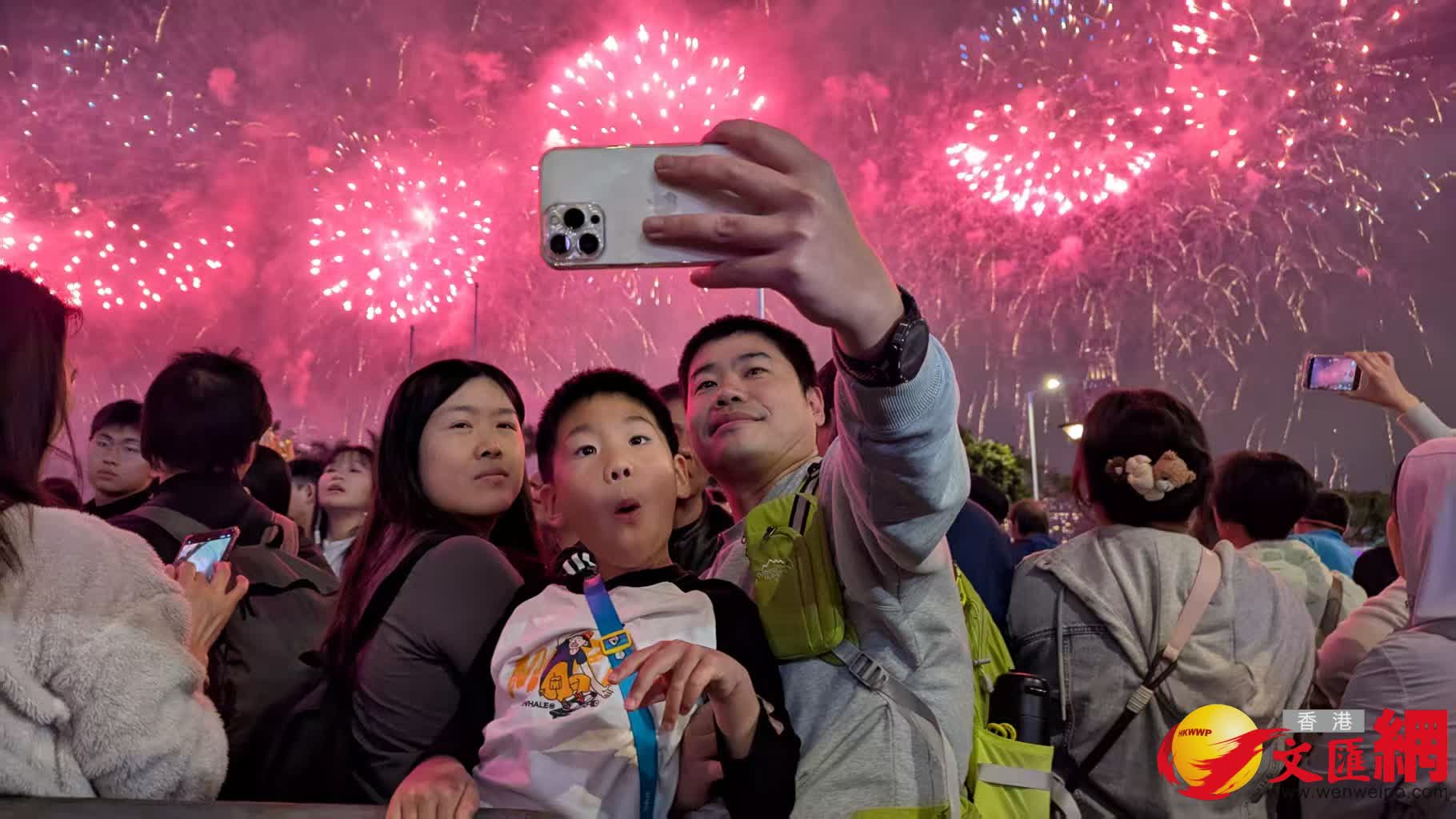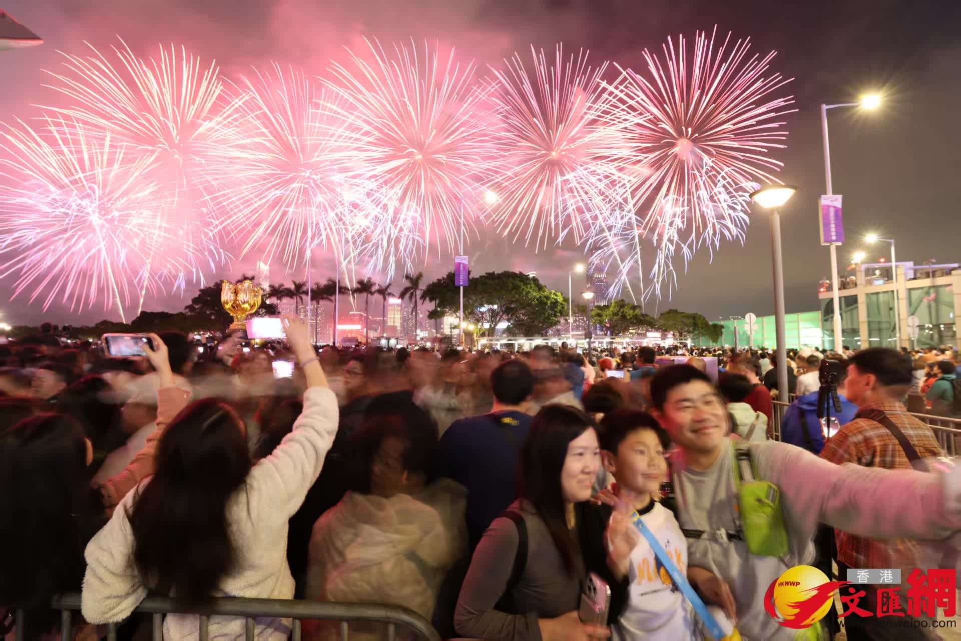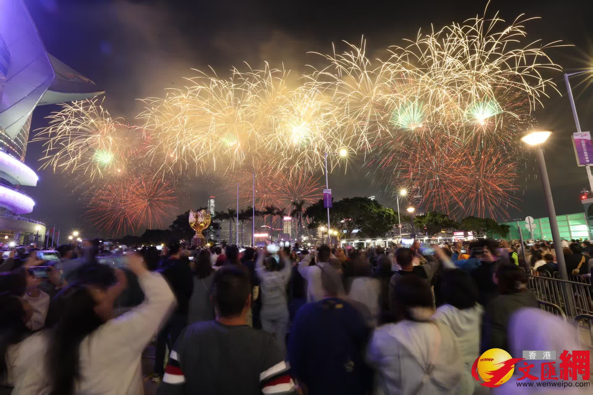 香港文匯報訊(記者 蕭景源)在維港舉行的農曆新年「馬到功成耀香江」馬年煙花匯演,今日(18日)大年初二晚上8時准時在維港上空綻放,吸引數以十萬計的市民和旅客在維港兩岸一同欣賞長達23分鐘的煙花匯演。