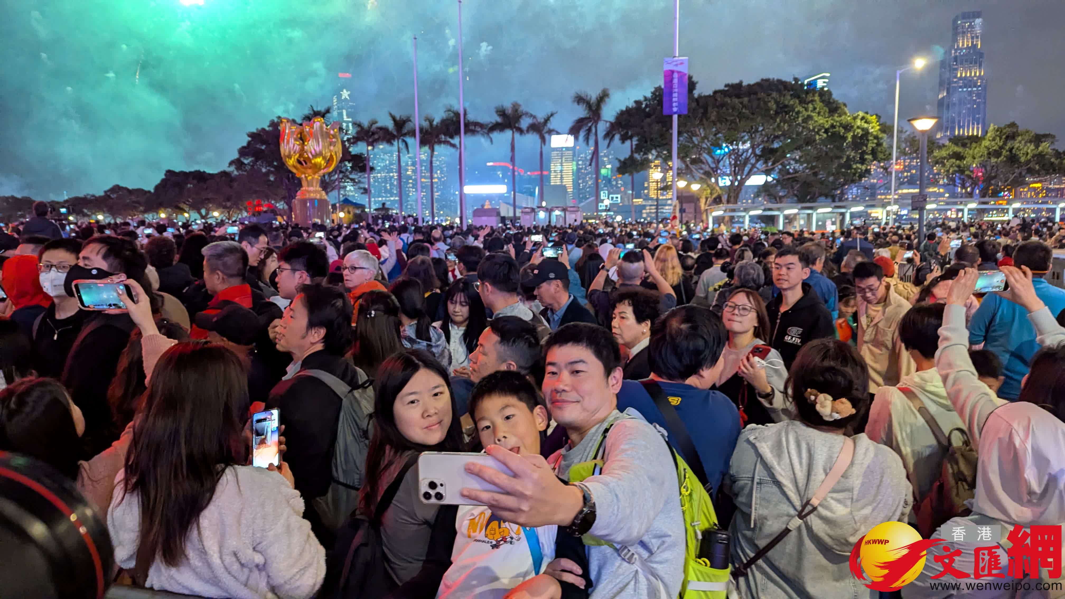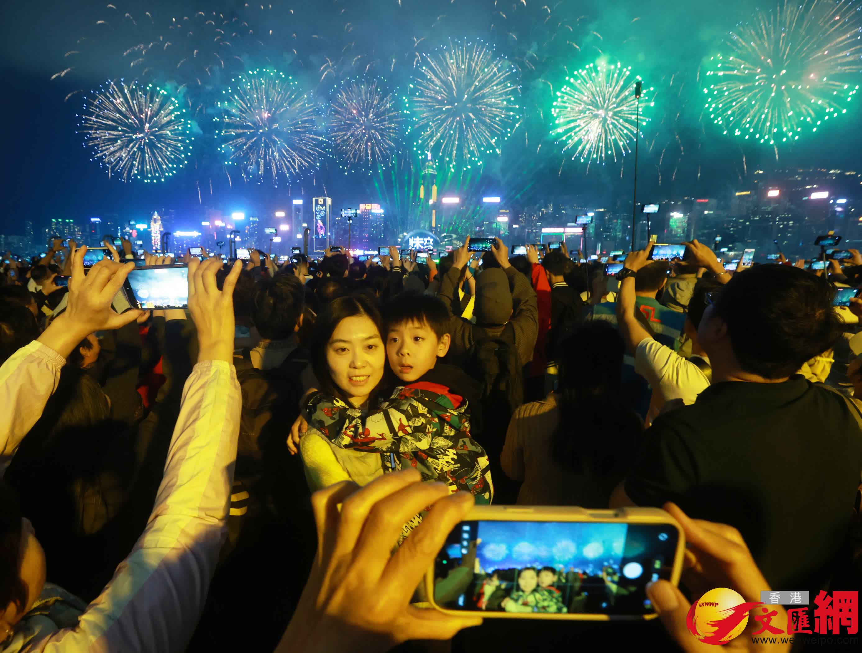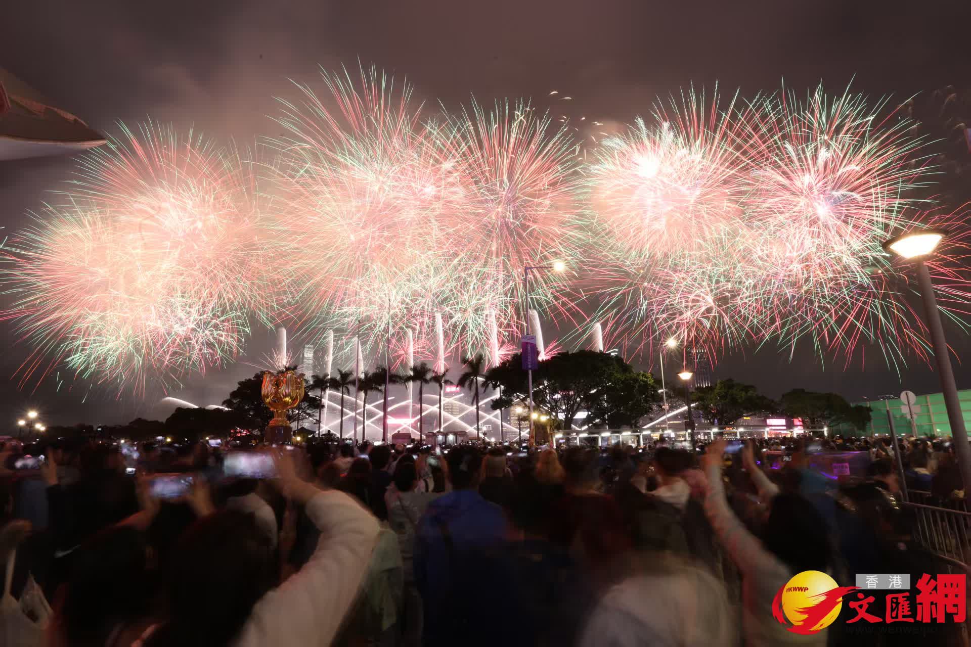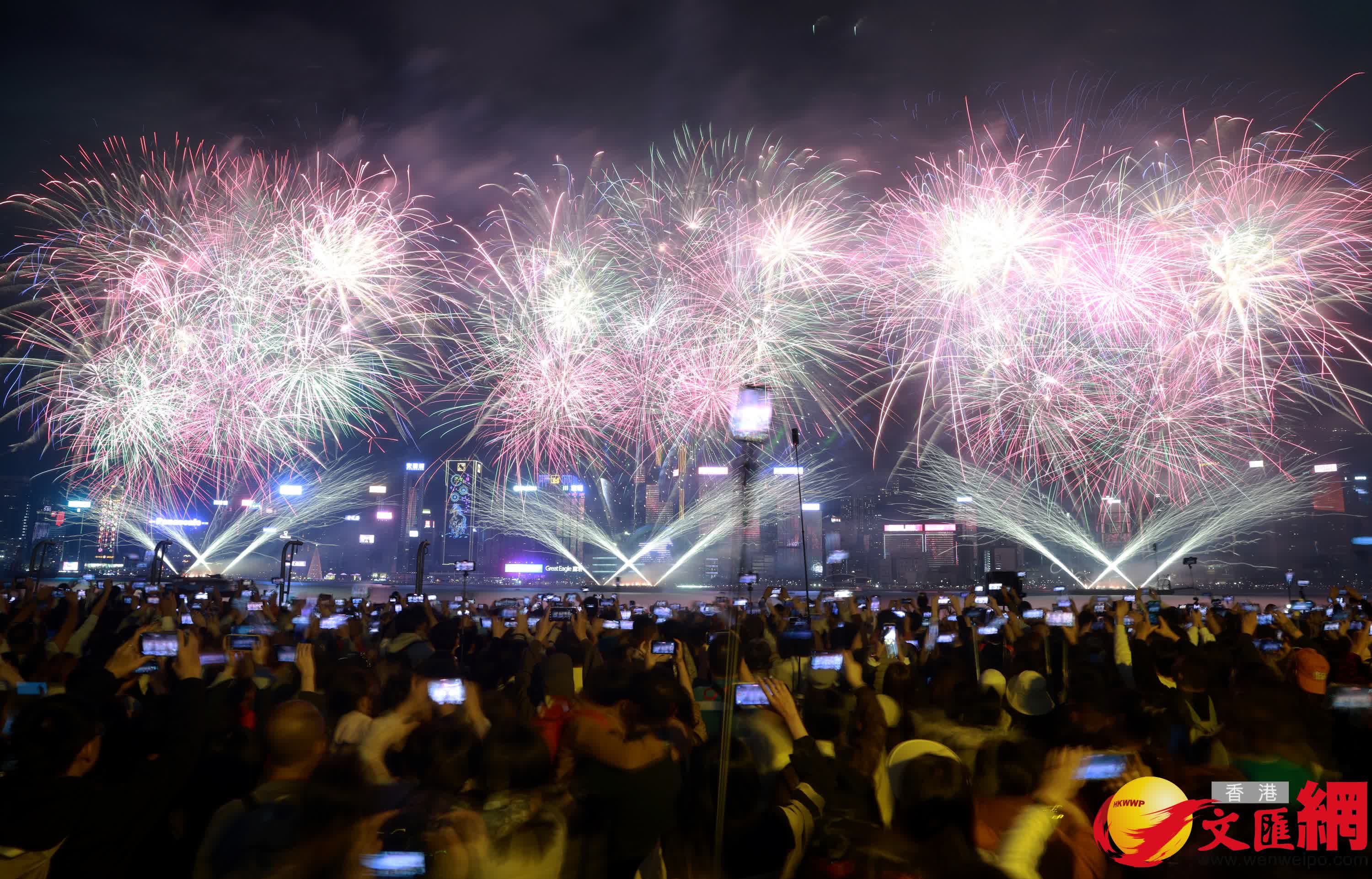 香港文匯報訊(記者 蕭景源)在維港舉行的農曆新年「馬到功成耀香江」馬年煙花匯演,今日(18日)大年初二晚上8時准時在維港上空綻放,吸引數以十萬計的市民和旅客在維港兩岸一同欣賞長達23分鐘的煙花匯演。