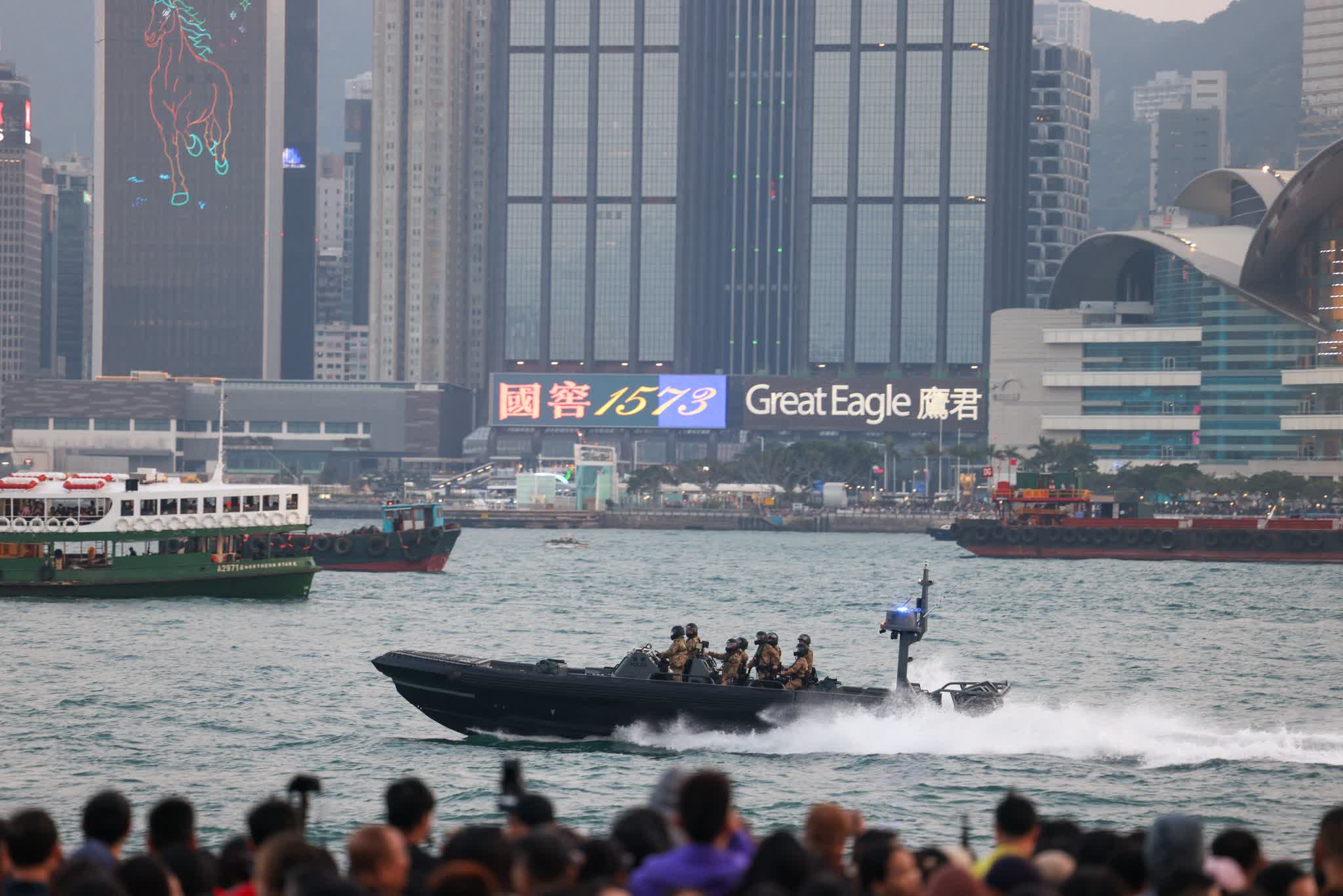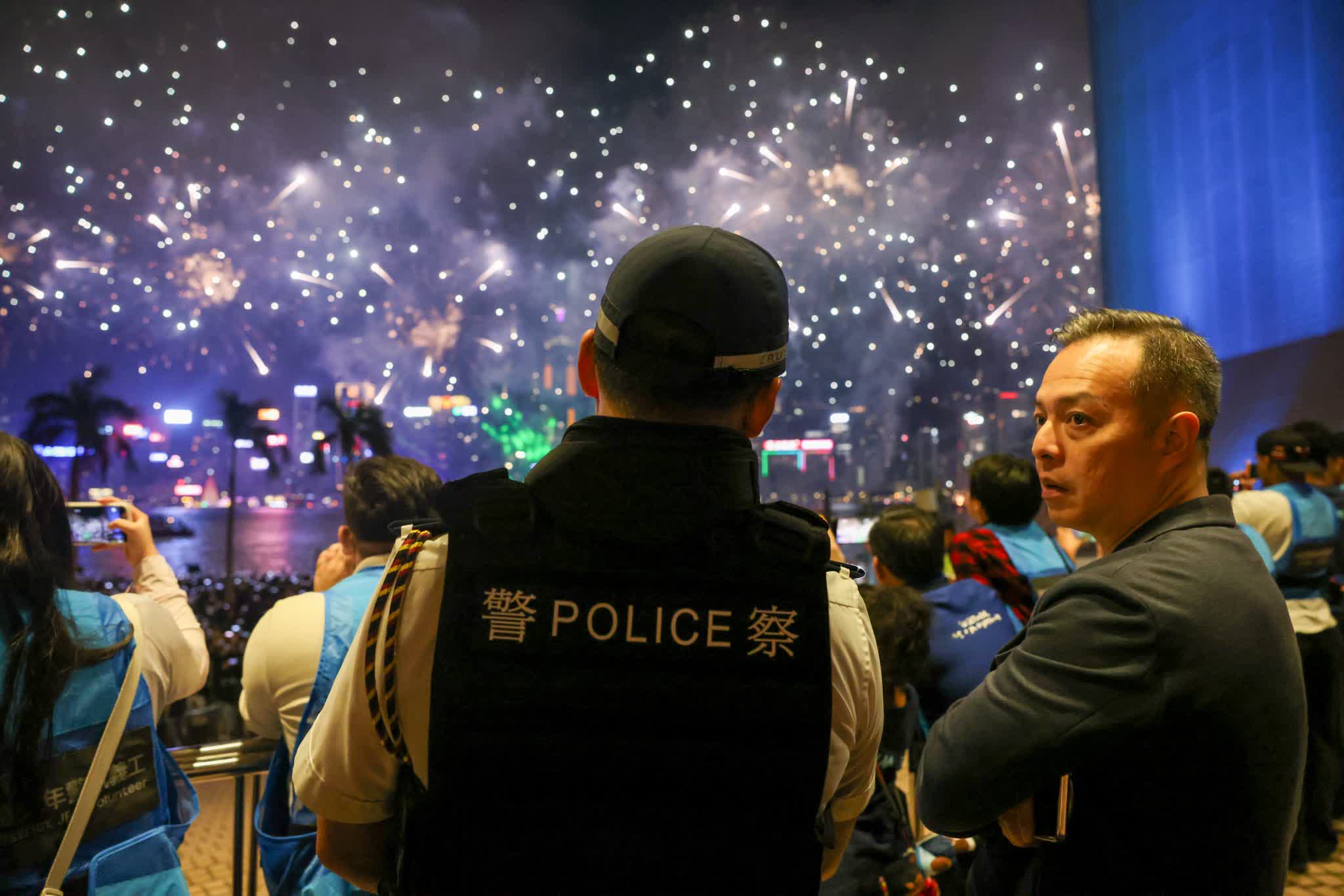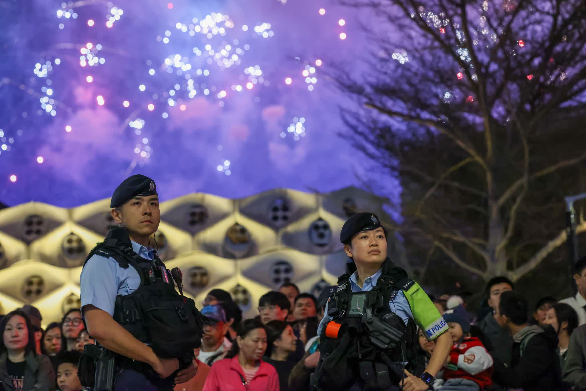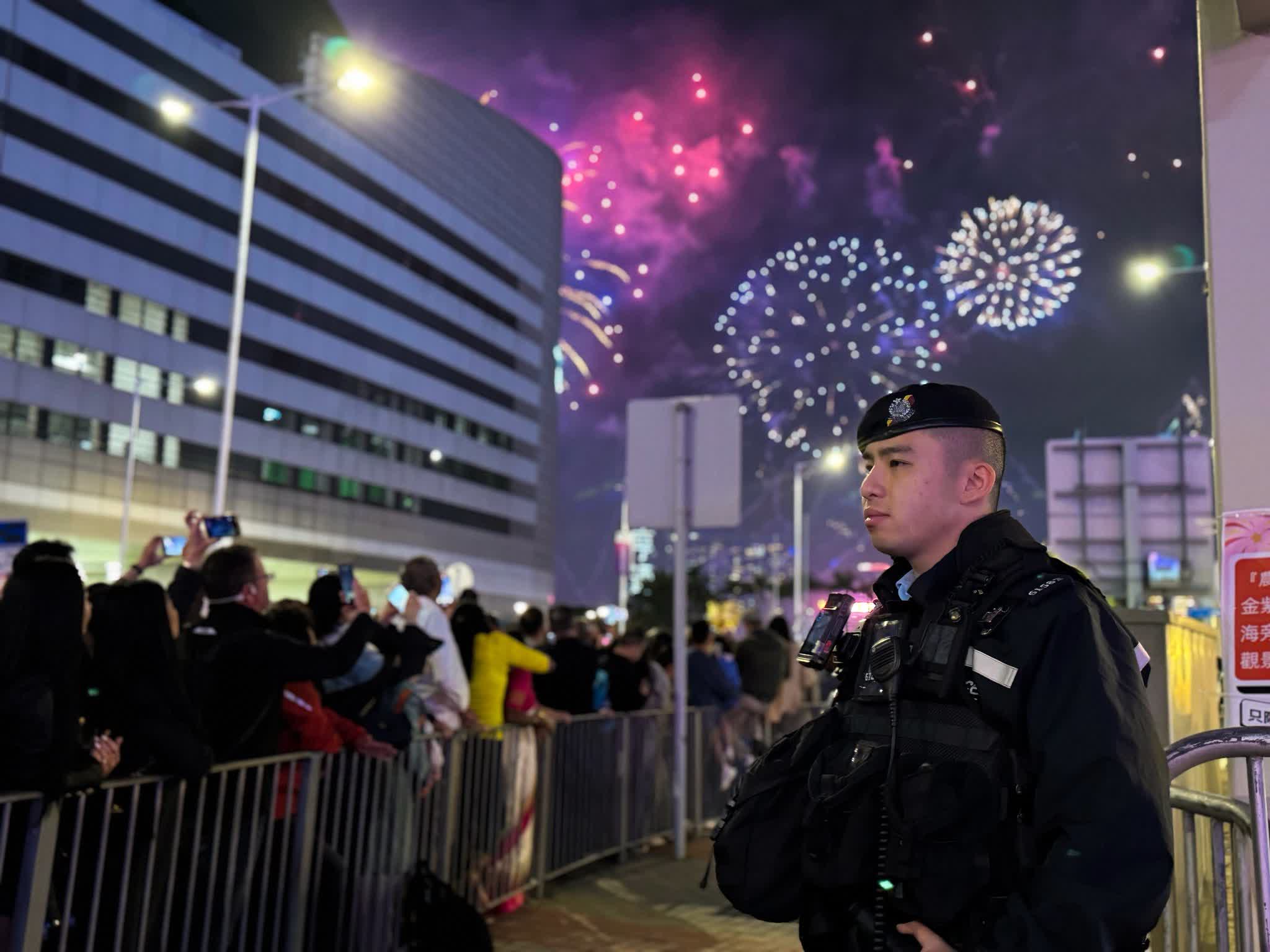 香港文匯報訊(記者 蕭景源)農曆新年「馬到功成耀香江」馬年煙花匯演,今日(18日)大年初二晚上8時准時在維港上空綻放,吸引超過36萬市民和旅客在維港兩岸一同欣賞。在絢麗奪目的煙花光影與音樂節奏交織下,警務人員堅守崗位,巡邏往返,為市民及遊客提供各種協助,陪伴大家共慶新春,迎接好運連連、駿馬奔騰的一年。