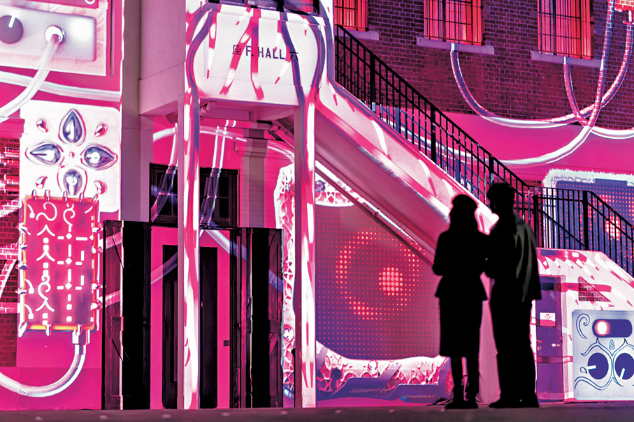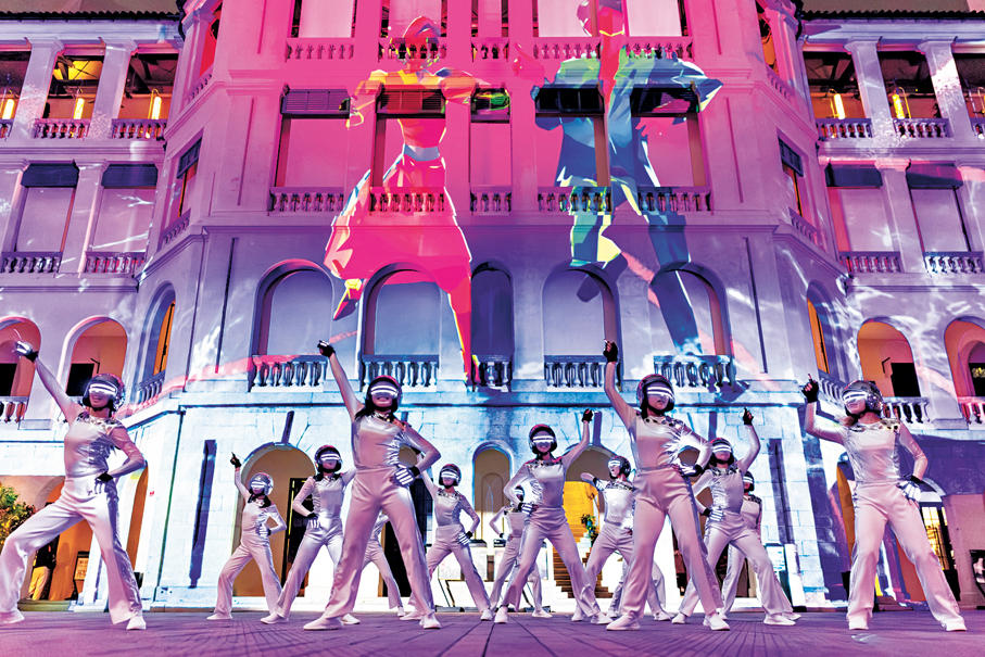 鮮艷的色彩、動感的旋律、歡樂的互動,近年來「綻放⼤館」都以光雕投影創意匯演給不少市民帶來驚喜。今年春節期間,大館的光雕投影匯演《流光幻夢》再度上演,並以全新互動設計、的士高舞曲加上專業舞者充滿科技感的演出,為觀眾奉上一場摩登與復古兼具的「狂熱派對」。
