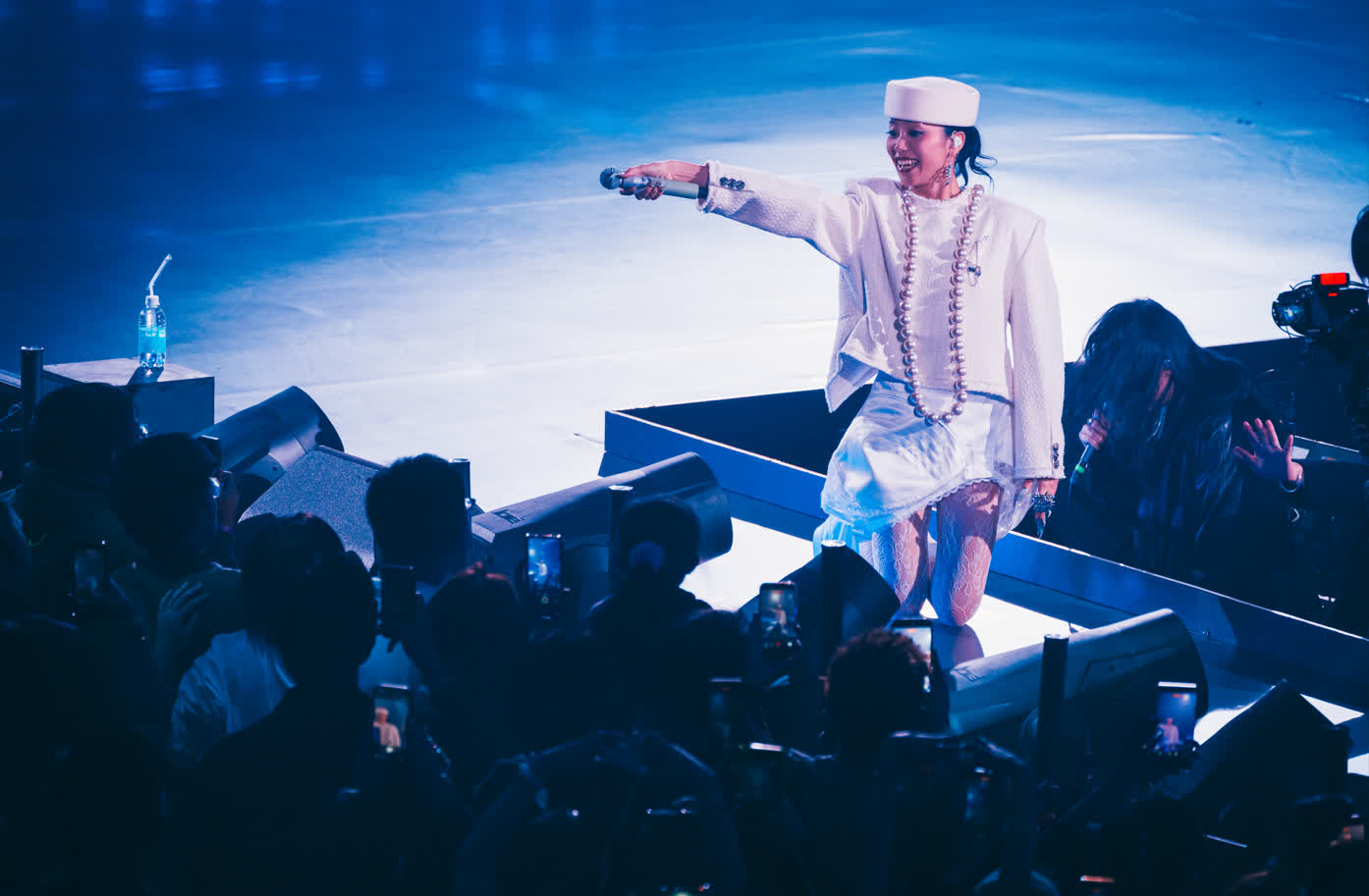 隨後,她走到台邊與歌迷拜年,並大玩 dance challenge。獻唱《花花宇宙》的標誌性前奏響起,「電音女王」陳慧琳(Kelly)現身舞台,全場歡呼聲震耳欲聾。Jace頓時化身小粉絲,難掩興奮,邊唱邊拉着Kelly蹦蹦跳。Kelly坦言是首次感受紅館的企位氣氛,隨即以一首《大日子》與觀眾同樂。
