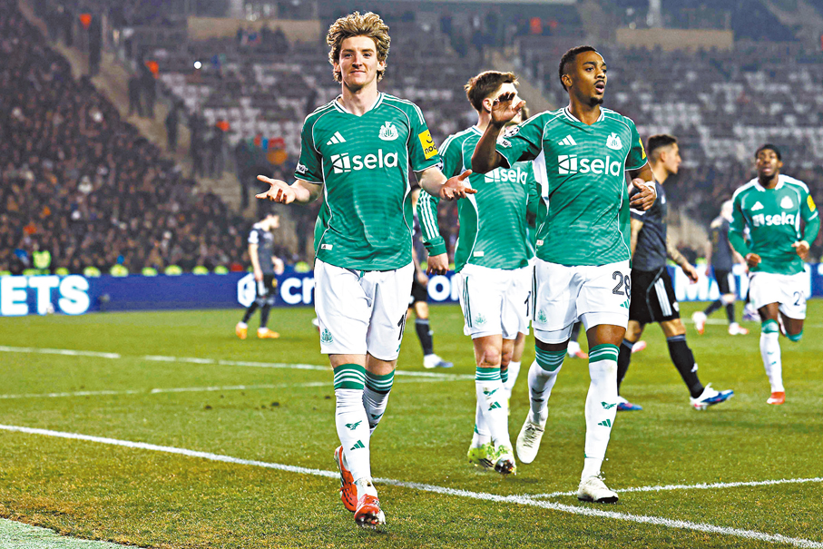 香港文匯報訊(記者 張發兒)香港時間周四(19日)凌晨歐聯附加賽首回合,紐卡素作客以6:1大勝阿塞拜疆球隊卡拉巴克,英格蘭國腳安東尼哥頓上半場已經達成「大四喜」,今屆歐聯累積10個入球,超越名宿舒利亞成為球會史上歐聯入球最多的球員。