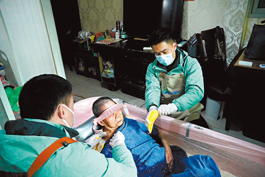 「起初家人也是反對的,覺得給別人洗澡不體面,不過我堅定地看好這個行業。」張龍總會想起第一次上門時老人子女的疲憊和感激。「我們守護的,不僅是身體的潔淨,更是暮年最後的尊嚴。」