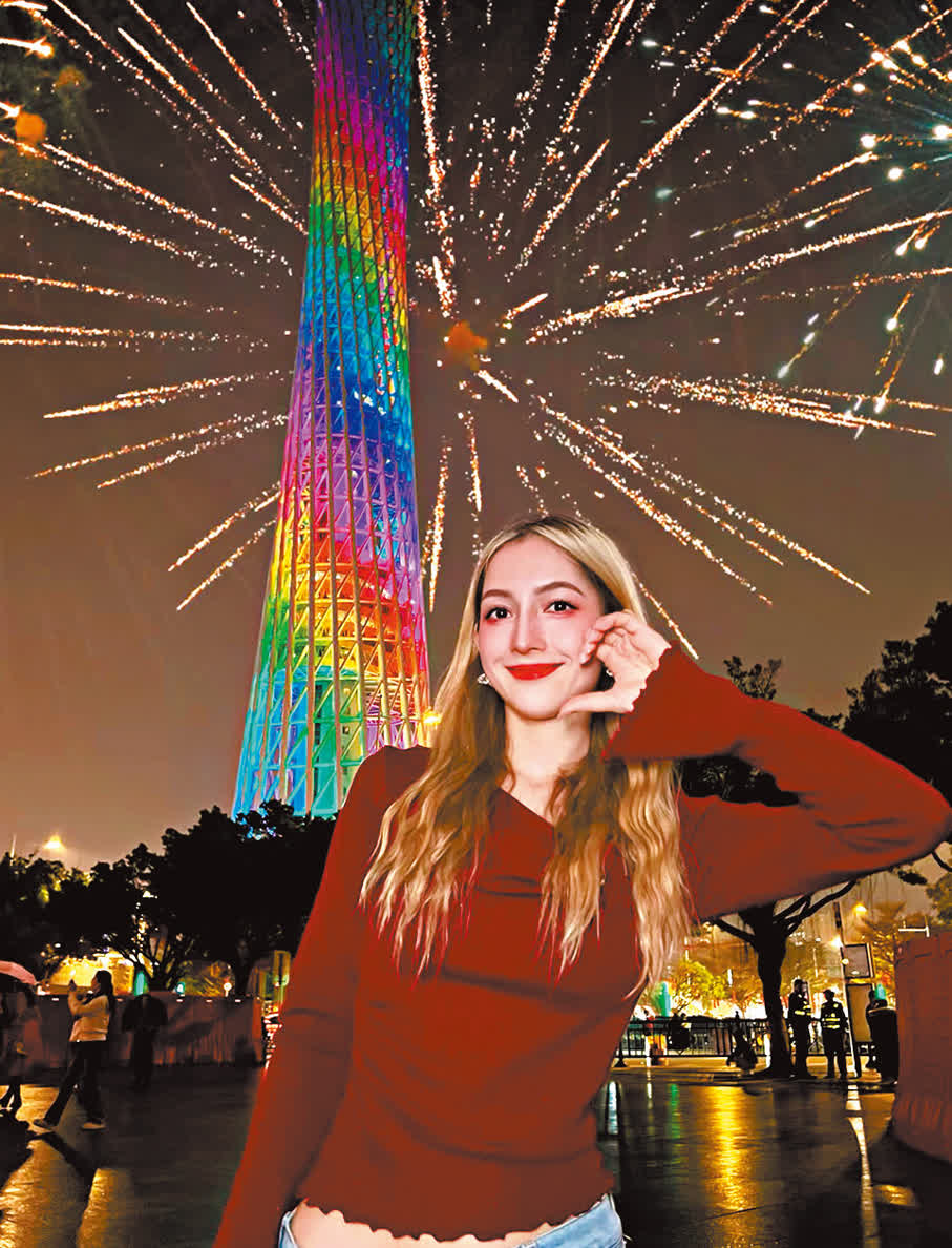 ●春節期間我到了廣州塔散步,也去了北京路步行街、一德路的年貨街,真的紅紅火火十分喜慶。我還嘗試了喝本地人愛喝的涼茶,體驗很特別。我覺得這裏十分有煙火氣。作為一名老外,真的待到不願意離開。