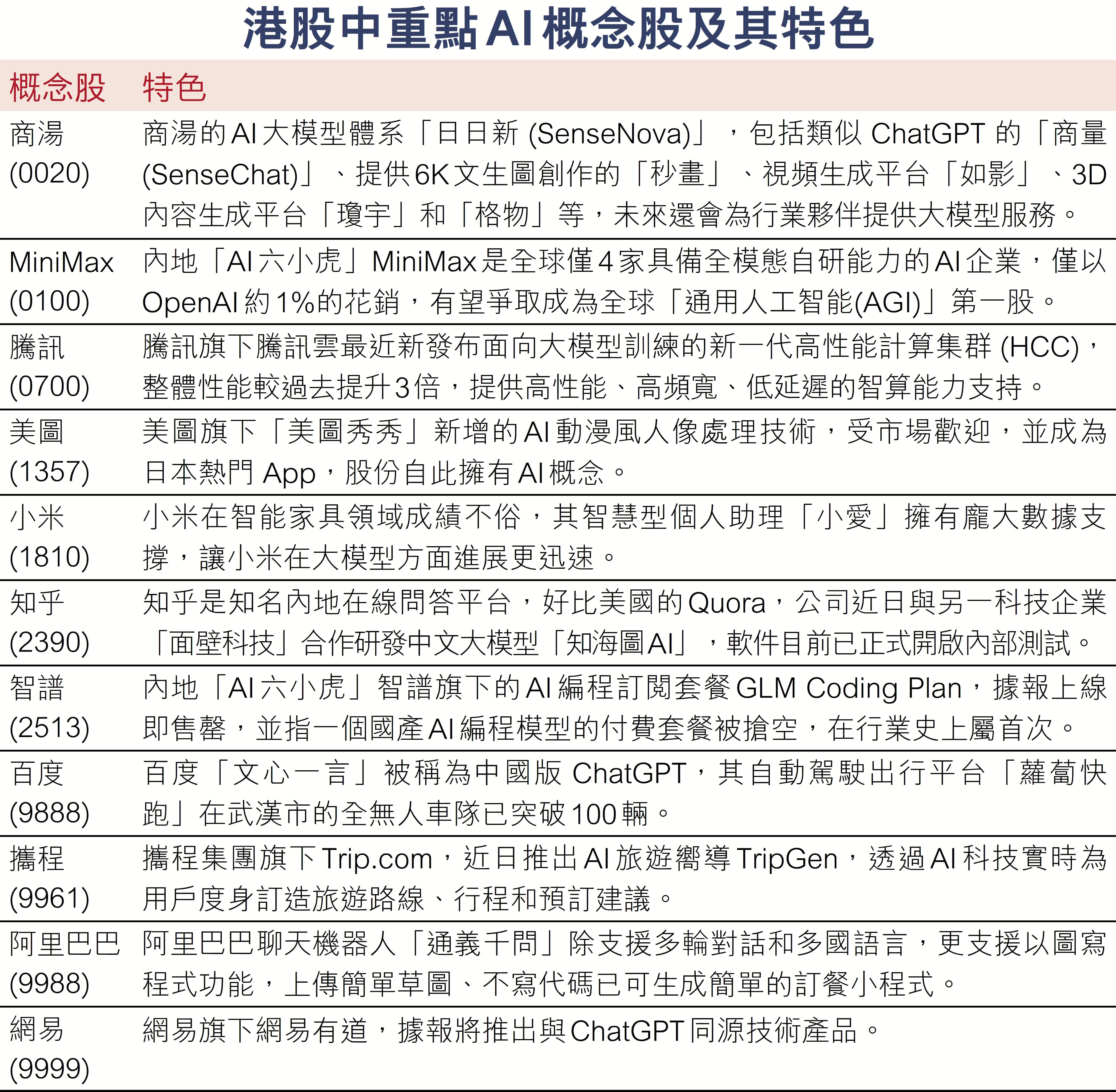 該行指,內地龍頭互聯網企業AI主線投資邏輯顯著強化,助力港股科技板塊估值修復。待上線的重磅模型包括DeepSeek-V4,阿里Qwen 3.5、豆包2.0、Mini Max M2.2等,或將成為下一階段催化劑。馬年上半年的AI首選股,該行推薦阿里、騰訊及快手。