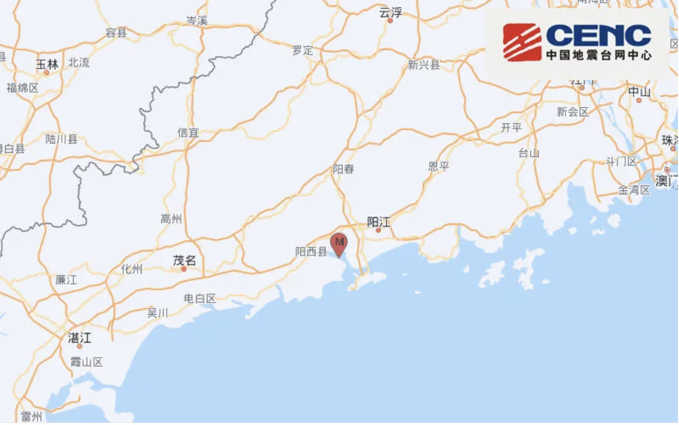 天文台:廣東陽江3.9級地震 市民報告有震感