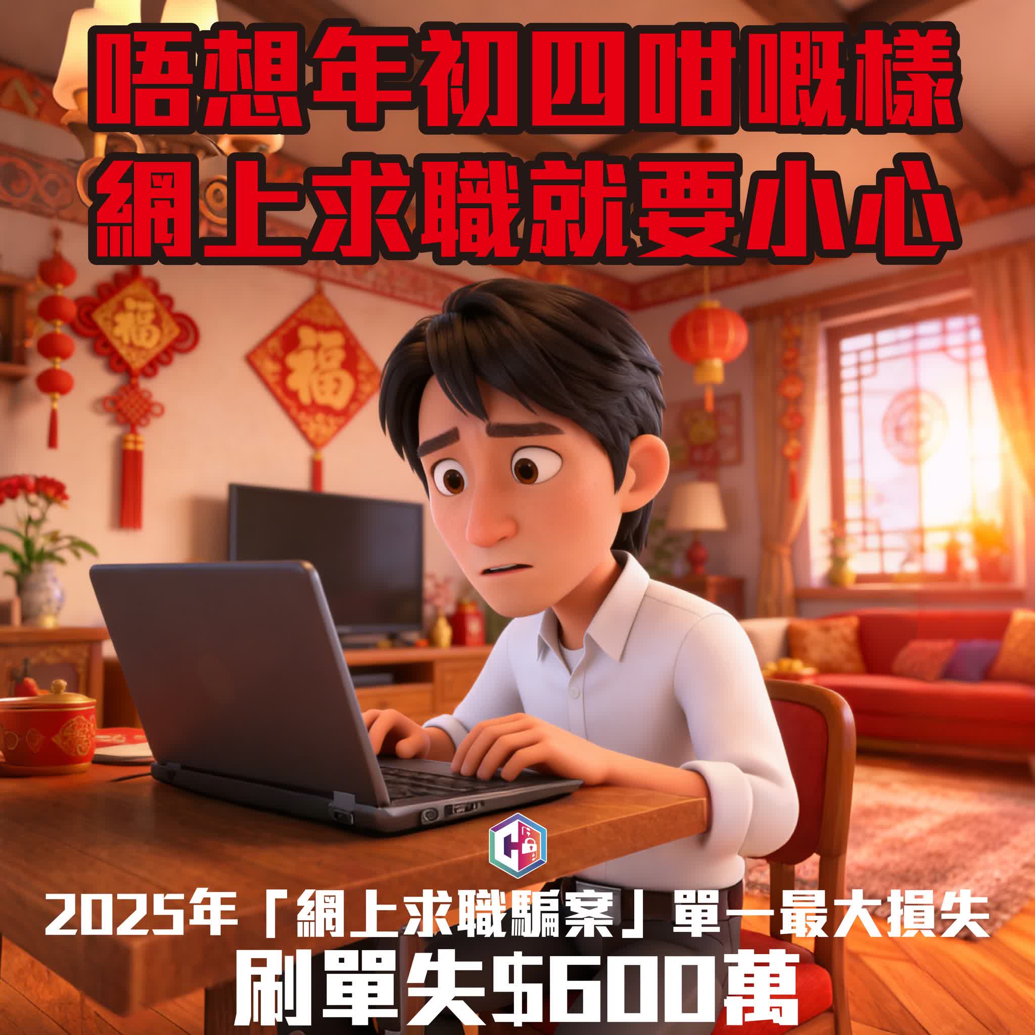 香港文匯報訊(記者 蕭景源)今日(20日)年初四,警方在守網者facebook專頁帖文提醒市民小心網上求職騙案,指2025年共接獲4,095宗網上求職騙案,較2024年增加242宗(↑6.3%),大多數為「刷單」騙案(96.5%)。