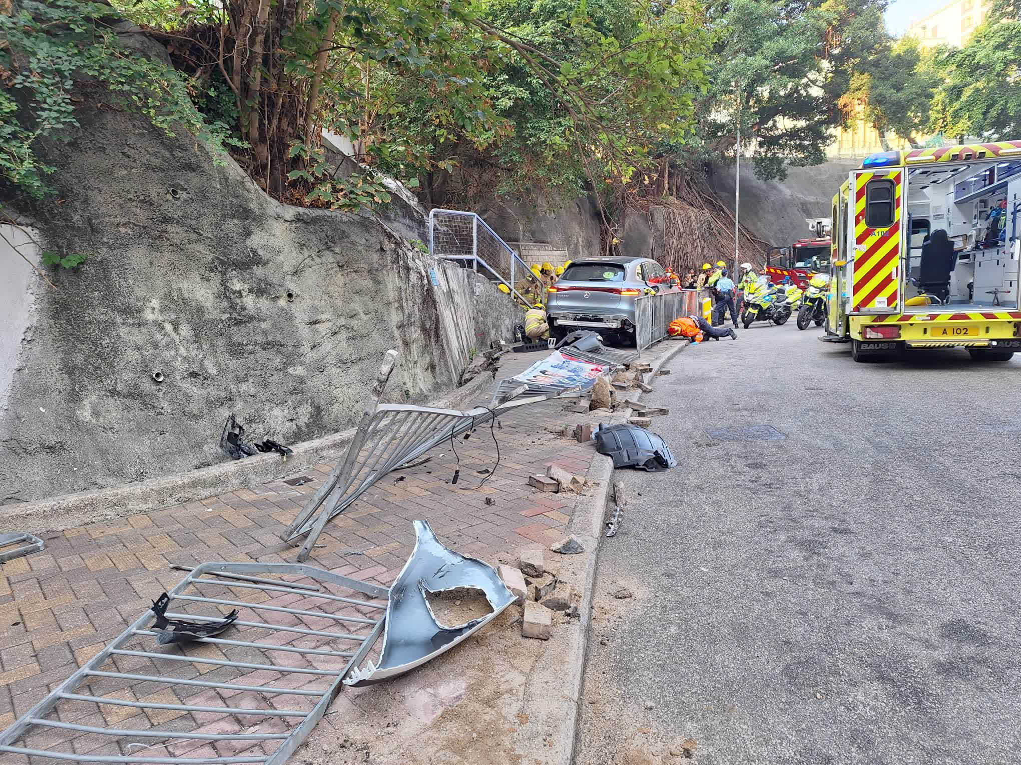 救援人員接報趕至,用工具唧起私家車,迅速救出被困車底傷者,她與父母俱清醒,一併由救護車送瑪麗醫院治理。事故中,姓郭(61歲)父親手腳及嘴部擦損,姓李(50歲)母親腳痛及頭部擦傷,至於25歲女兒手腳擦損及盆骨痛楚。