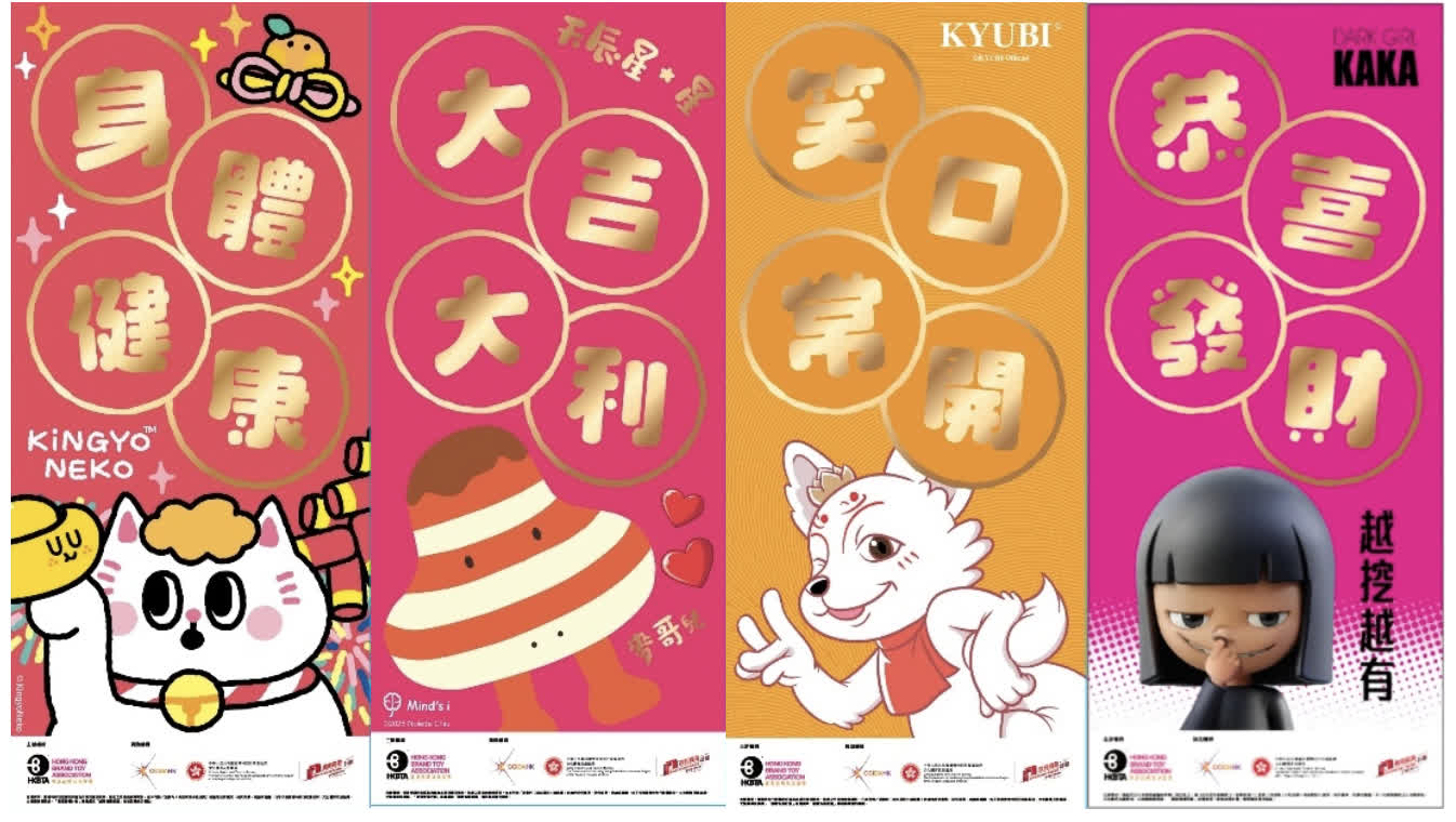 欣賞完所有展品後,不妨參與現場兩大互動攤位遊戲,有機會贏取限定IP賀年揮春帶回家!揮春款式分別來自KINGYONEKO 金魚貓、Tubamon Mykoi、KYUBI及Dark Girl KAKA兩套揮春(共4款)(共兩套四款),為新春添上別緻收藏。紀念品數量有限,送完即止。