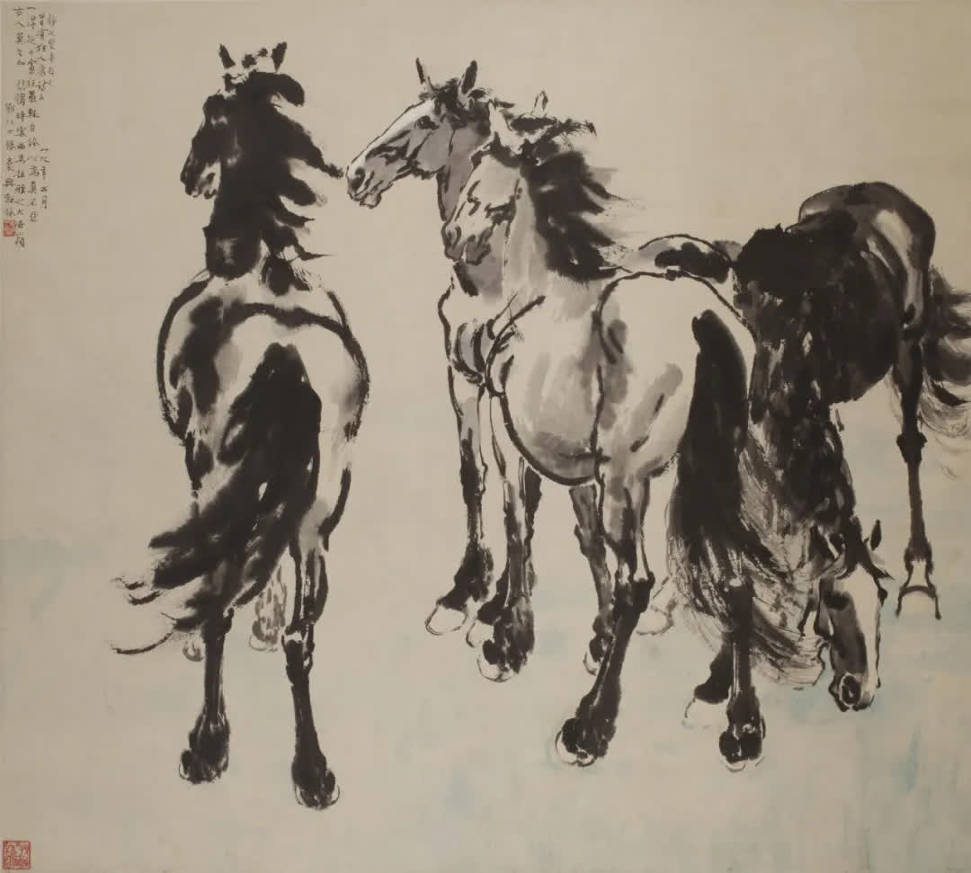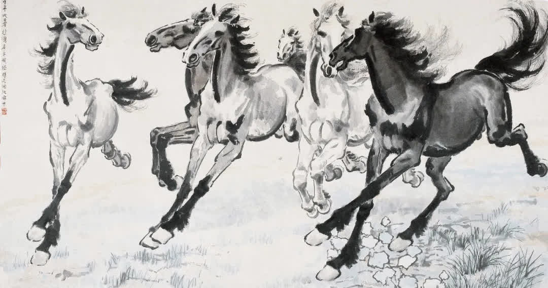 近代以來,徐悲鴻的馬畫可謂「一騎絕塵」,他在中國繪畫史上開創了寫意畫馬的先河,即以中國筆墨為體,以西方寫實技法為用,其影響之深遠,至今沛然。