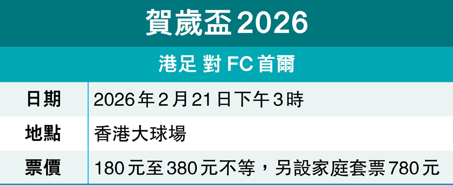 另外港足的星級教練團在賀歲盃前再有新成員,曾三次奪得香港足球明星選舉最佳教練的朱志光,獲暫代主教練盧比度邀請加入。朱志光曾在2019年至2021年擔任港足助教,協助當時的主帥麥柏倫領軍,而朱Sir今次將與列斯奧和高尼路一同輔助盧比度,他亦將會隨隊征戰下個月作客印度的亞洲盃外圍賽。