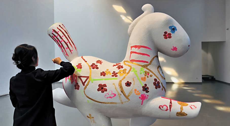 步入禧園,首先映入眼簾的是氣勢沉靜的漢唐風格建築,經工作人員指引,方知這裏是禧美術館。館中藏有一幅長達64.5米的手繪原永樂宮壁畫《朝元圖》,1:1復刻自山西永樂宮原作。站在畫前,頓感震撼。禧園文化集團總經理孫維禪告訴記者:「為了容納這幅巨製,我們專門建造了這座美術館,力求完整呈現畫作,室內88米通體沒有一根柱子。」在這裏,可以近距離凝望中國壁畫之美——神仙衣袂蹁躚,神態安然。靜立片刻,彷彿能與畫中286位仙人進行一場無聲的心靈對話。若想將這份仙氣帶回家,館內還不定期開設壁畫臨摹課程,讓指尖觸摸傳統的溫度。