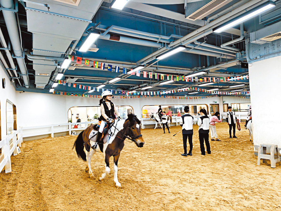 記者注意到,該店以室內場地為特色,適配各年齡及資歷的學員。兒童僅兩歲半便可參與親子興趣培養,3歲正式啟蒙教學,解決了香港8歲以下兒童難以參與正規馬術課程的問題。此外,俱樂部採用Q1至Q13階梯式教學體系,搭配考級、賽事等,形成從基礎騎行到專業競賽的完整閉環。「除了騎馬,每5節至10節課我們會設置馬匹護理實操課,讓學員不僅學騎馬,更懂養馬、愛馬。」沈喻晗說。
