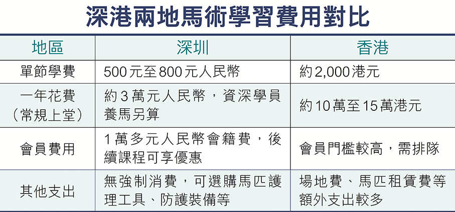 馬年到來,深圳各大馬術場館也熱鬧起來。口岸穿梭的車流裏,載着奔赴馬場的香港家庭;室內馬術館的圍欄邊,滿是說着粵語的家長與孩子;戶外賽道上,資深香港騎手們揚鞭縱馬,身姿矯健。香港文匯報記者走訪發現,每到周末及節假日,深圳的室內、室外馬術場館裏,香港學員的身影隨處可見,越來越多香港市民跨越深港邊界,將深圳作為馬術學習的首選地。有機構稱,在門店學員中,來自香港的學員佔比達八成以上。港人北上學騎馬的熱潮,在大灣區正持續升溫。 ●香港文匯報記者 李薇、胡永愛 深圳報道