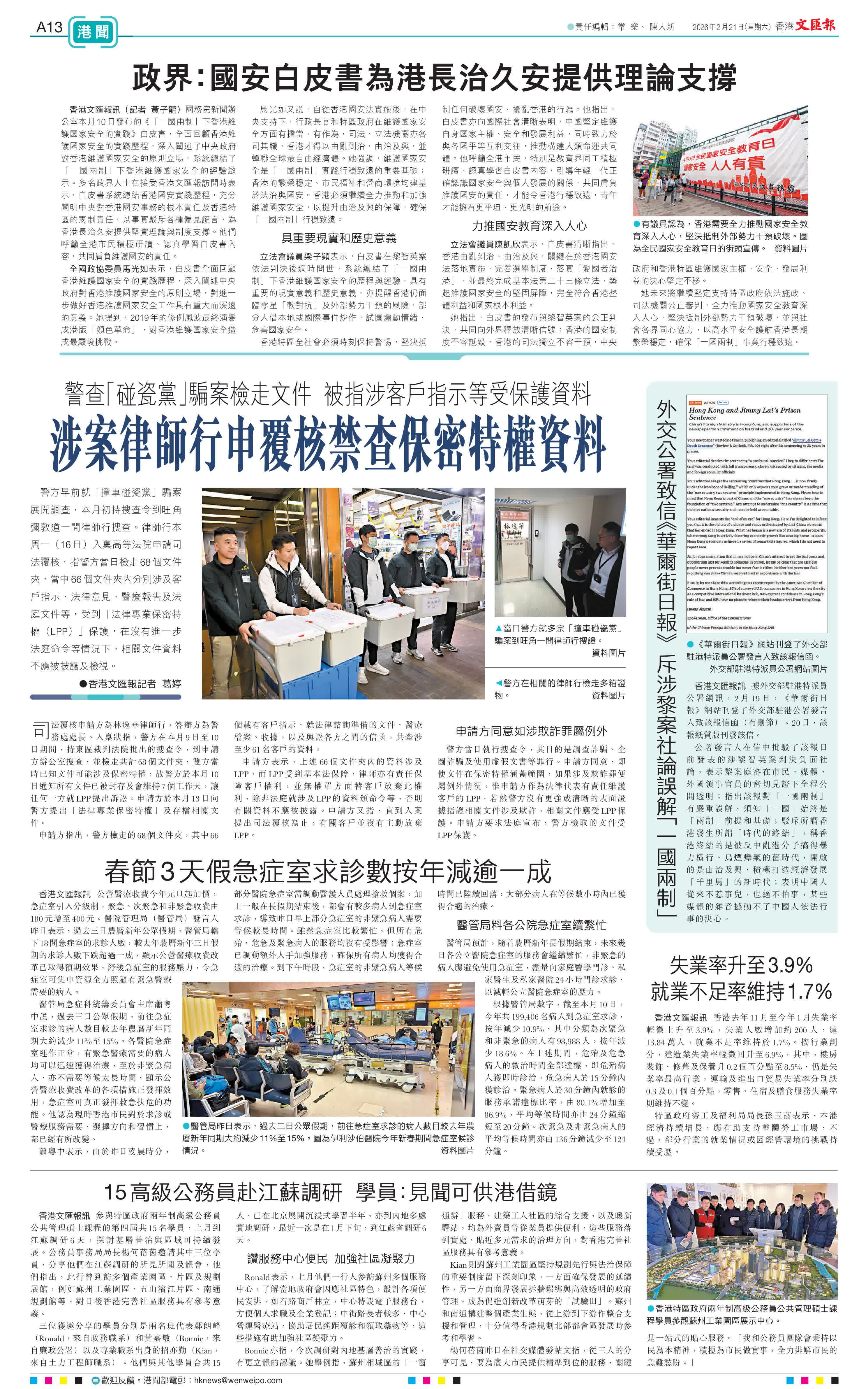 香港文匯報訊 香港去年11月至今年1月失業率輕微上升至3.9%,失業人數增加約200人,達13.84萬人,就業不足率維持於1.7%。按行業劃分,建造業失業率輕微回升至6.9%,其中,樓房裝飾、修葺及保養升0.2個百分點至8.5%,仍是失業率最高行業,運輸及進出口貿易失業率分別跌0.3及0.1個百分點,零售、住宿及膳食服務失業率則維持不變。