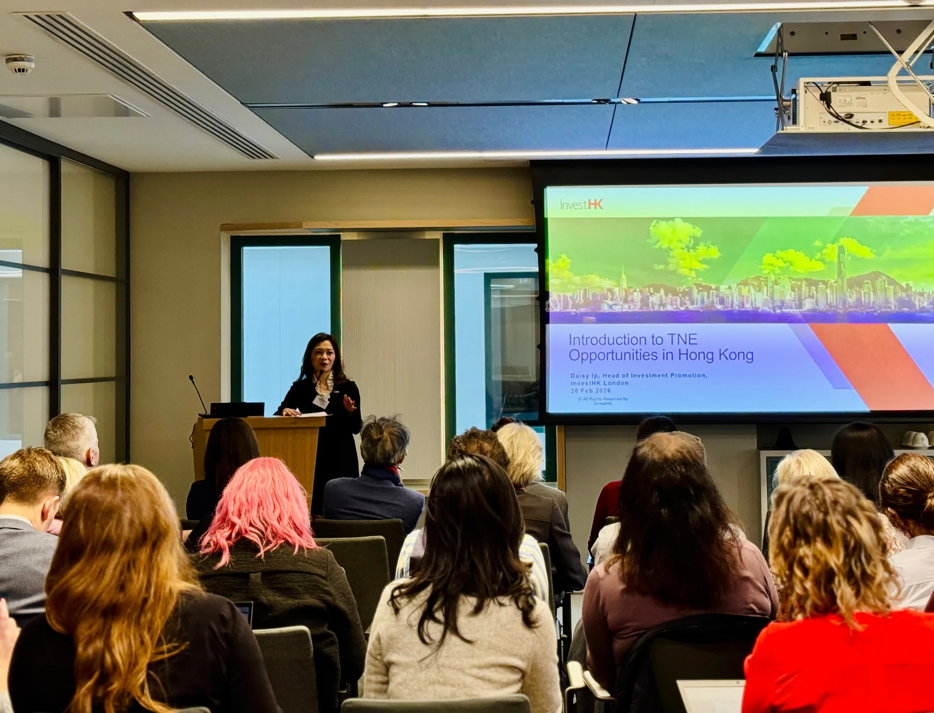 駐倫敦經貿辦處長周雪梅在酒會上致辭時表示,香港的創新科技生態圈正蓬勃發展,並介紹多項相關政策措施。她特別提及於2025年年底開園的河套深港科技創新合作區香港園區,以及北部都會區大學城的未來發展,進一步鞏固香港作為國際創科及教育樞紐的地位。