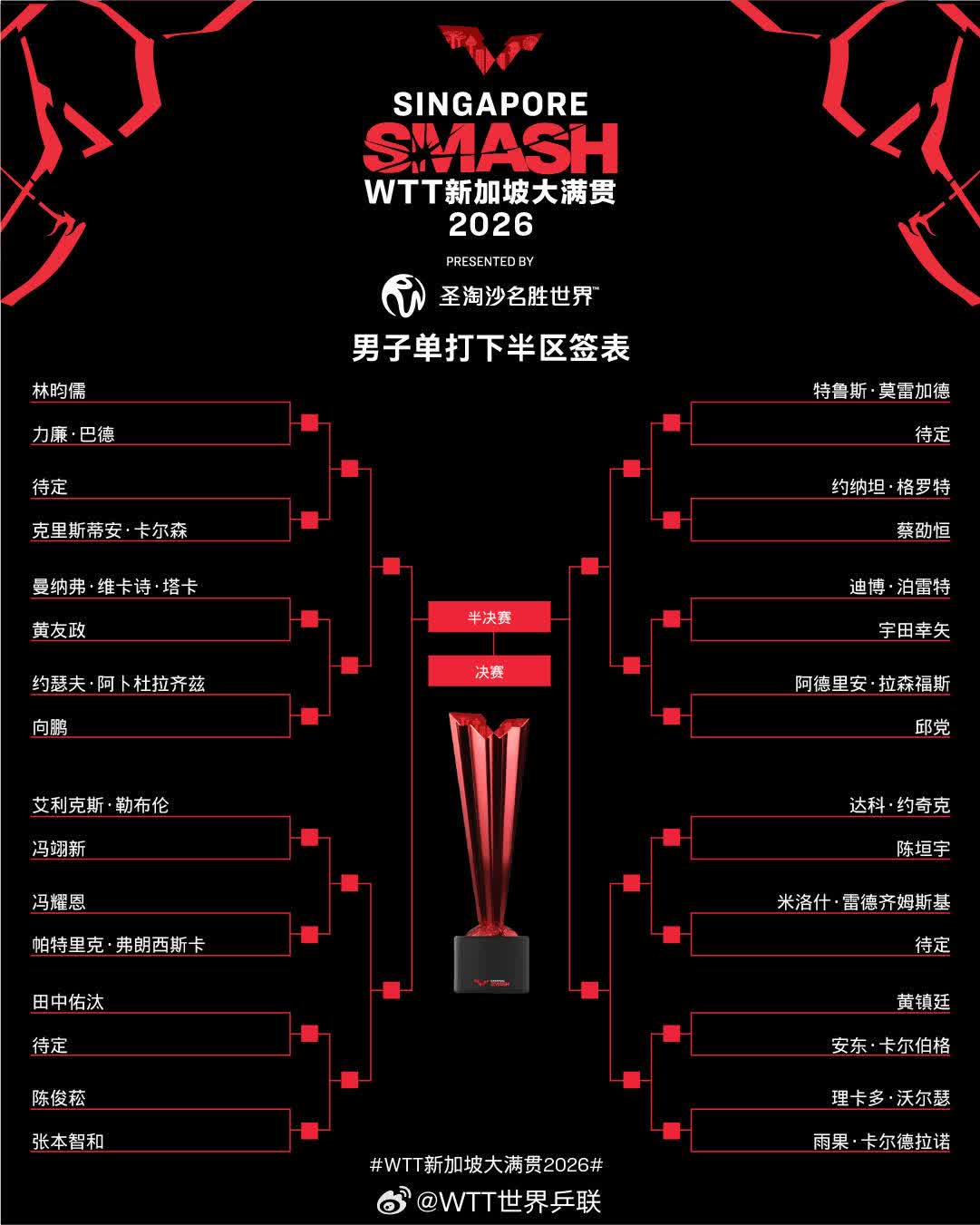 2026年WTT新加坡大滿貫正賽將於