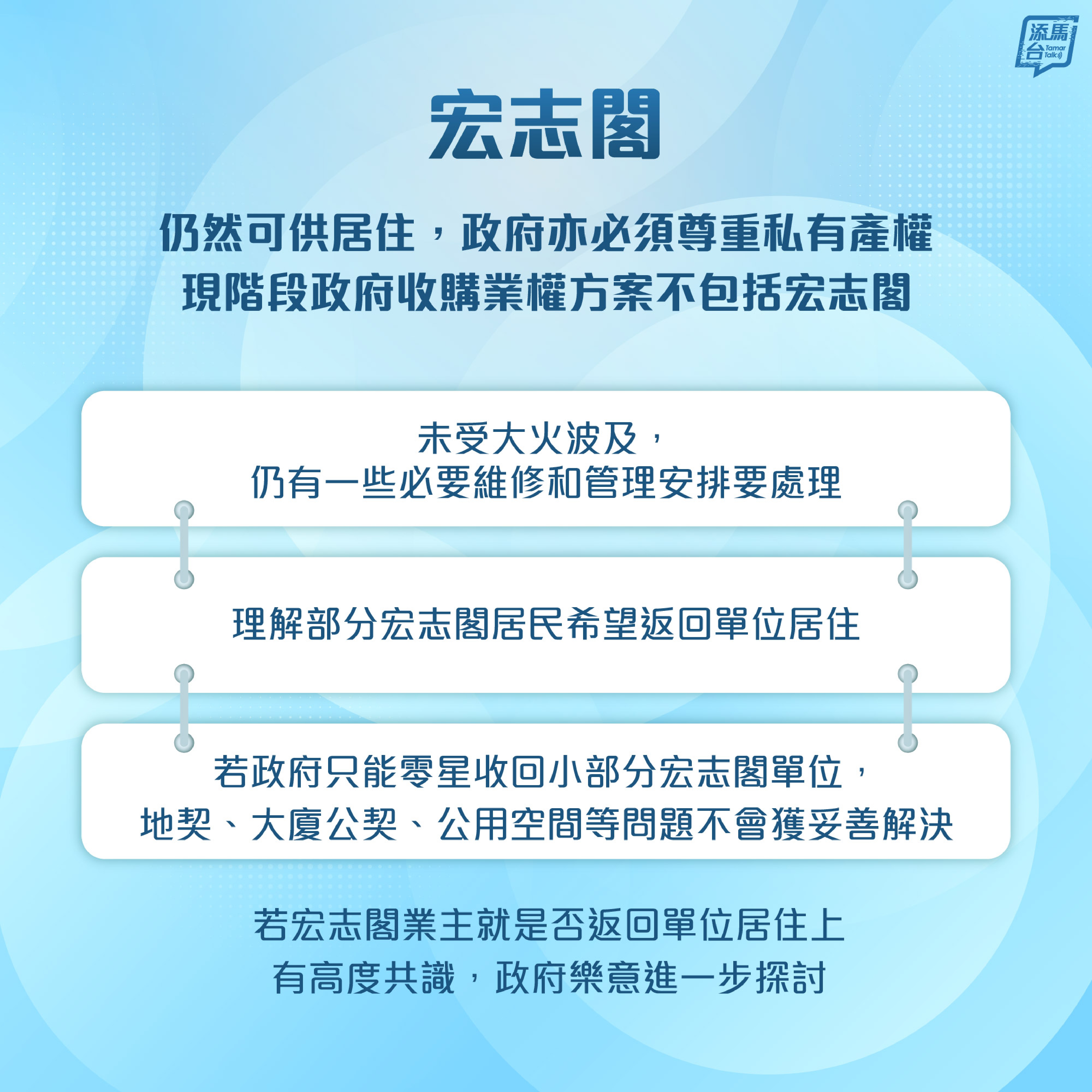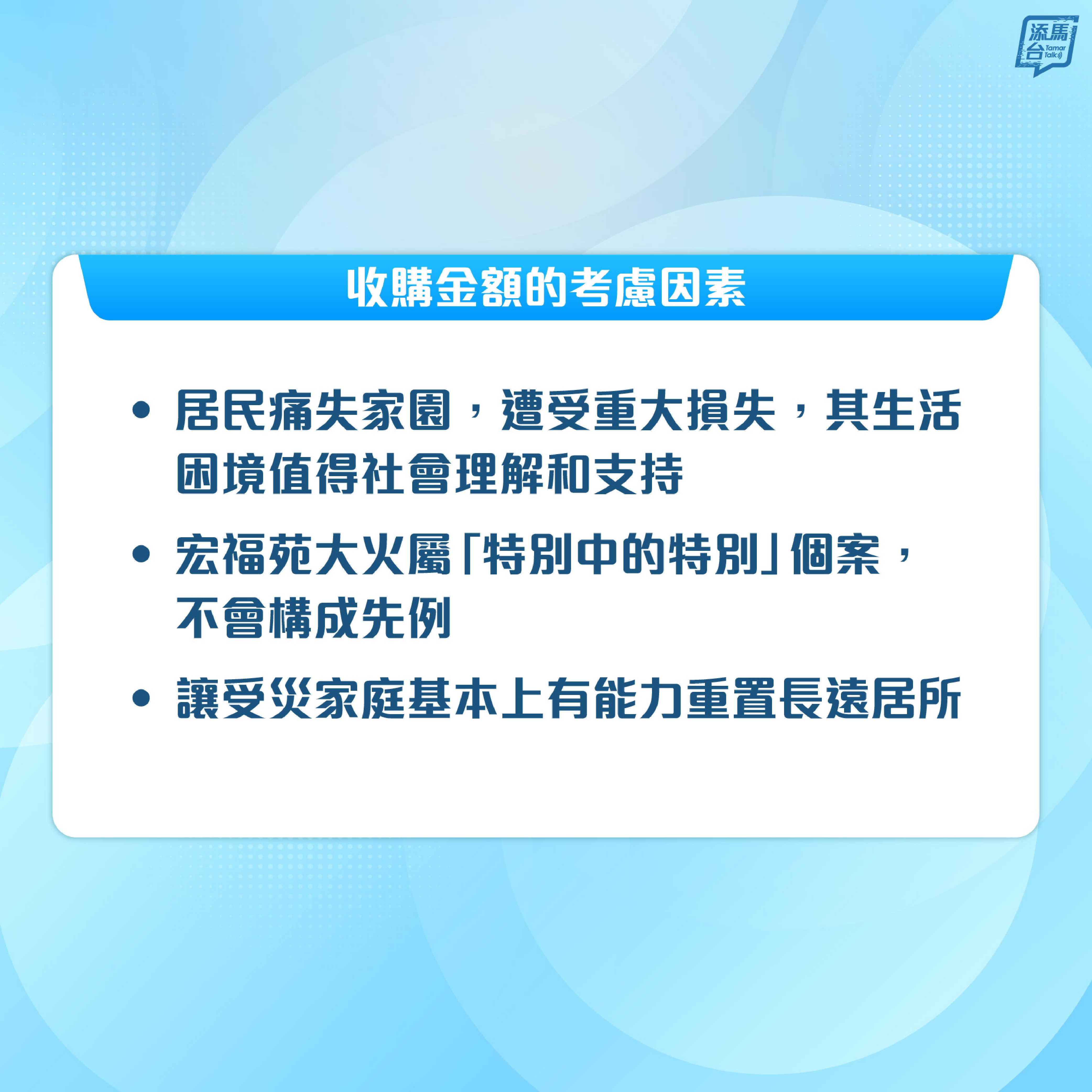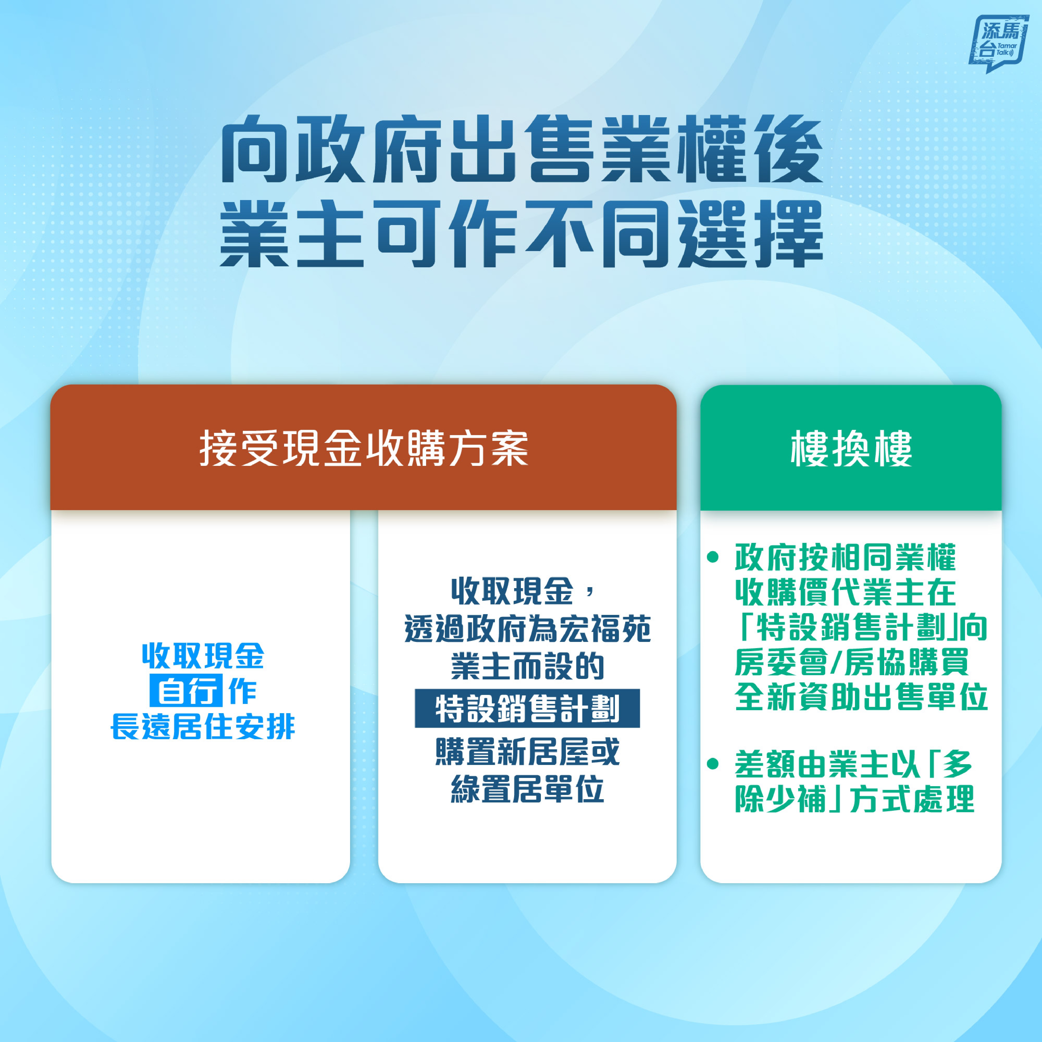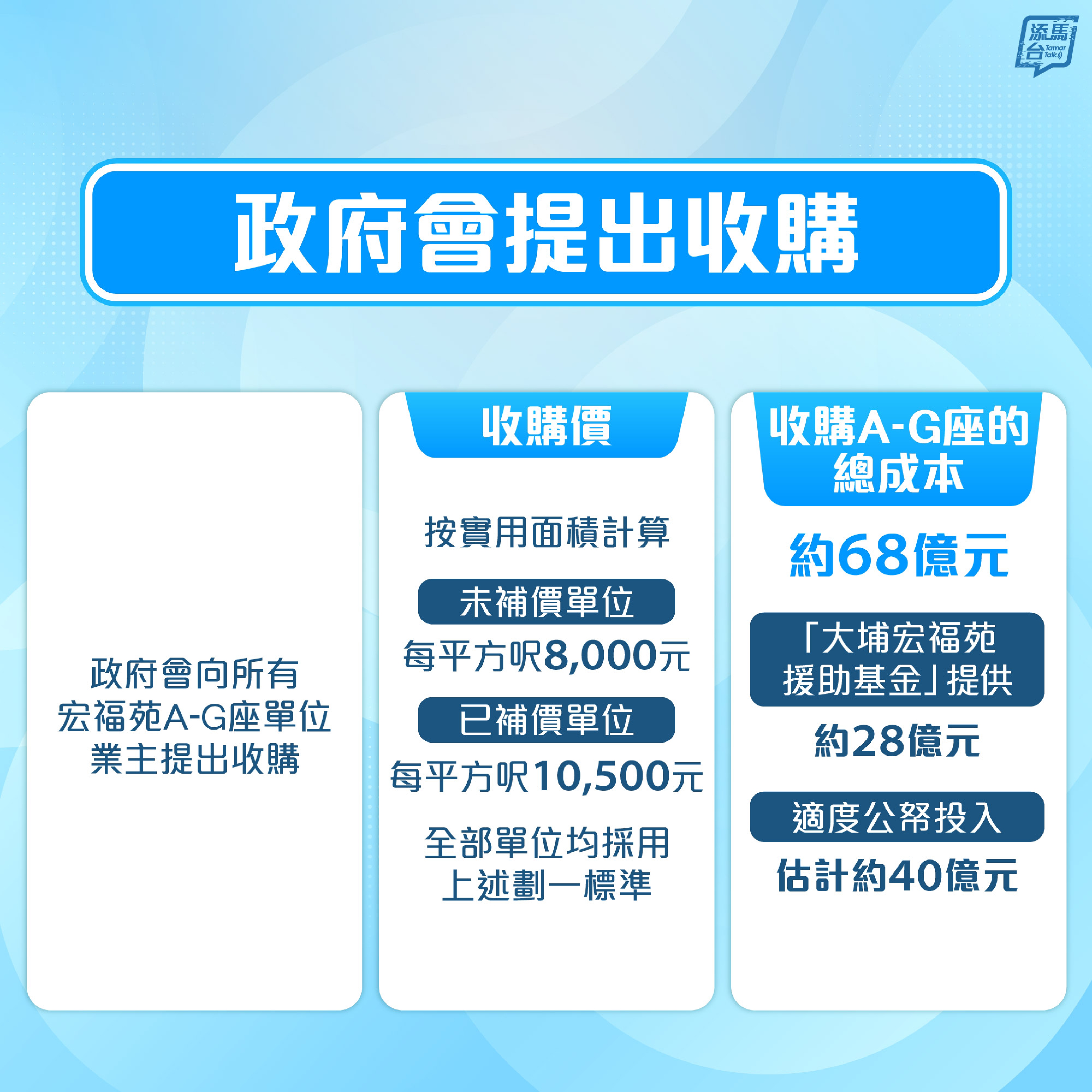 政府今日(21日)下午舉行記者會,公布大埔宏福苑長遠居住安排方案。財政司副司長黃偉綸表示,根據問卷調查顯示,七成四業主考慮接受政府收購業權方案。宏福苑長遠居住安排考慮哪些原則?政府用什麼方式收購業主業權?收購價是多少?即睇懶人包了解!