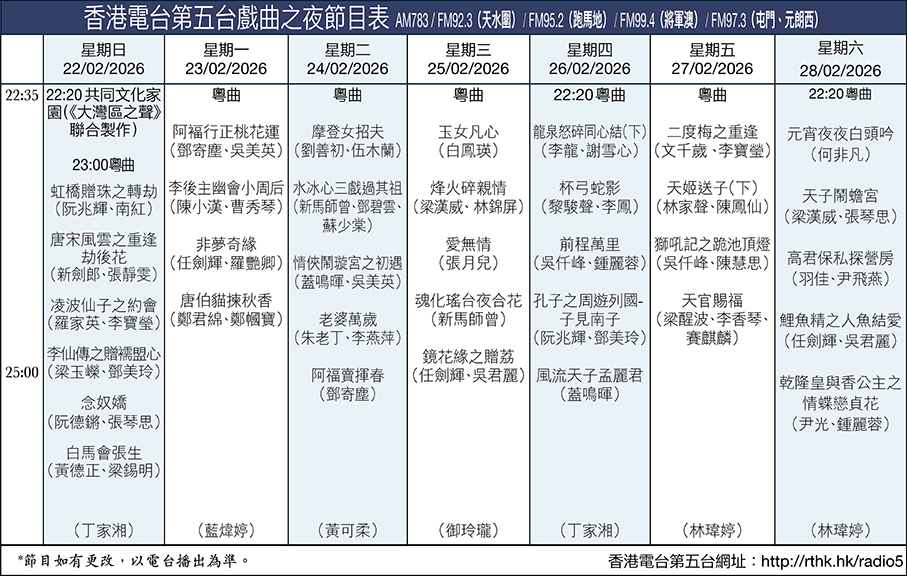 香港電台第五台戲曲之夜節目表