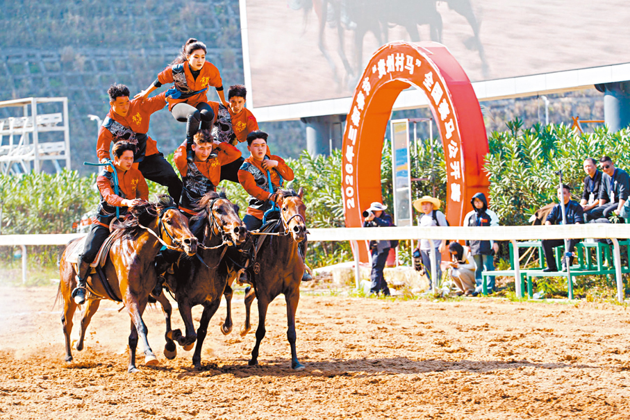今年春節期間,貴州「村馬」熱度不減,一場以馬為主題的文旅活動將持續近一個月。其中,正月初四至初六是整個活動的高潮時段,中國西部賽馬城上演全國民族速度賽馬公開賽;正月初九至元宵節,「龍獅舞水鄉·駿馬鬧新春」主題巡遊、馬車巡遊、馬戲團表演等活動輪番登場。
