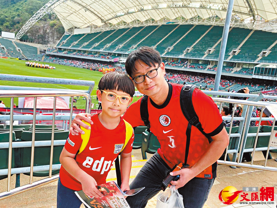 球迷黃先生昨穿上港隊球衣與八歲兒子入場觀賽,他坦言小時候雖曾入大球場看賀歲盃,「我那年代始終交通沒現在般方便,所以也不常入場,現在我也會帶兒子到球場看球賽,由他兩歲開始已帶他入場,希望成為一個傳統。」