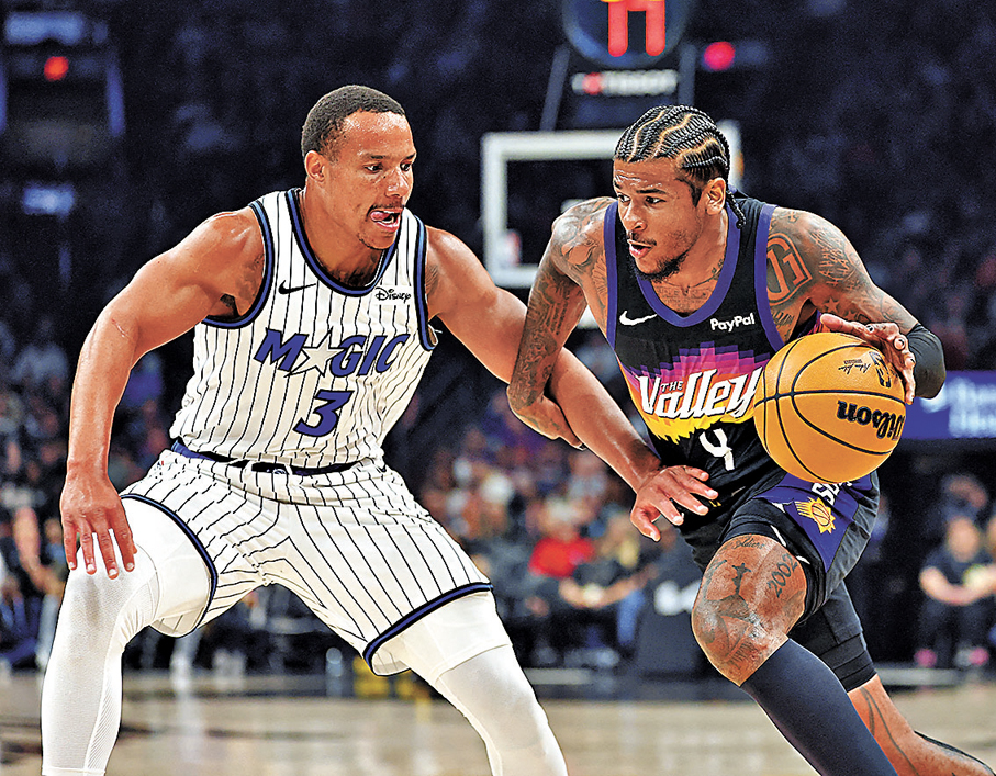 香港文匯報訊(記者 楊浩然)雖然有主力迪雲布加缺陣,以及悍將布魯克斯於初段即傷出,但太陽於昨日NBA常規賽仍在兩度加時下,主場以113:110勇挫魔術。