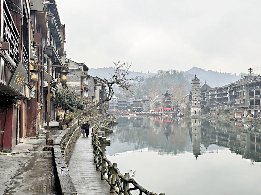 在鳳凰寫邊城是一件很奇妙的事。當你抬起頭來,看着沱江邊這座白塔,聽着路邊循環播放的民歌《湘見·沱江》。儘管這時候,來來往往的都是遊客,且時間還是冬日,你也不覺得這地方不如意。你會把它當成是真正的邊城,就好像沈從文描述的茶峒被整體搬遷至此了。你會一一對比眼中所見,並確認這裏不是別處。