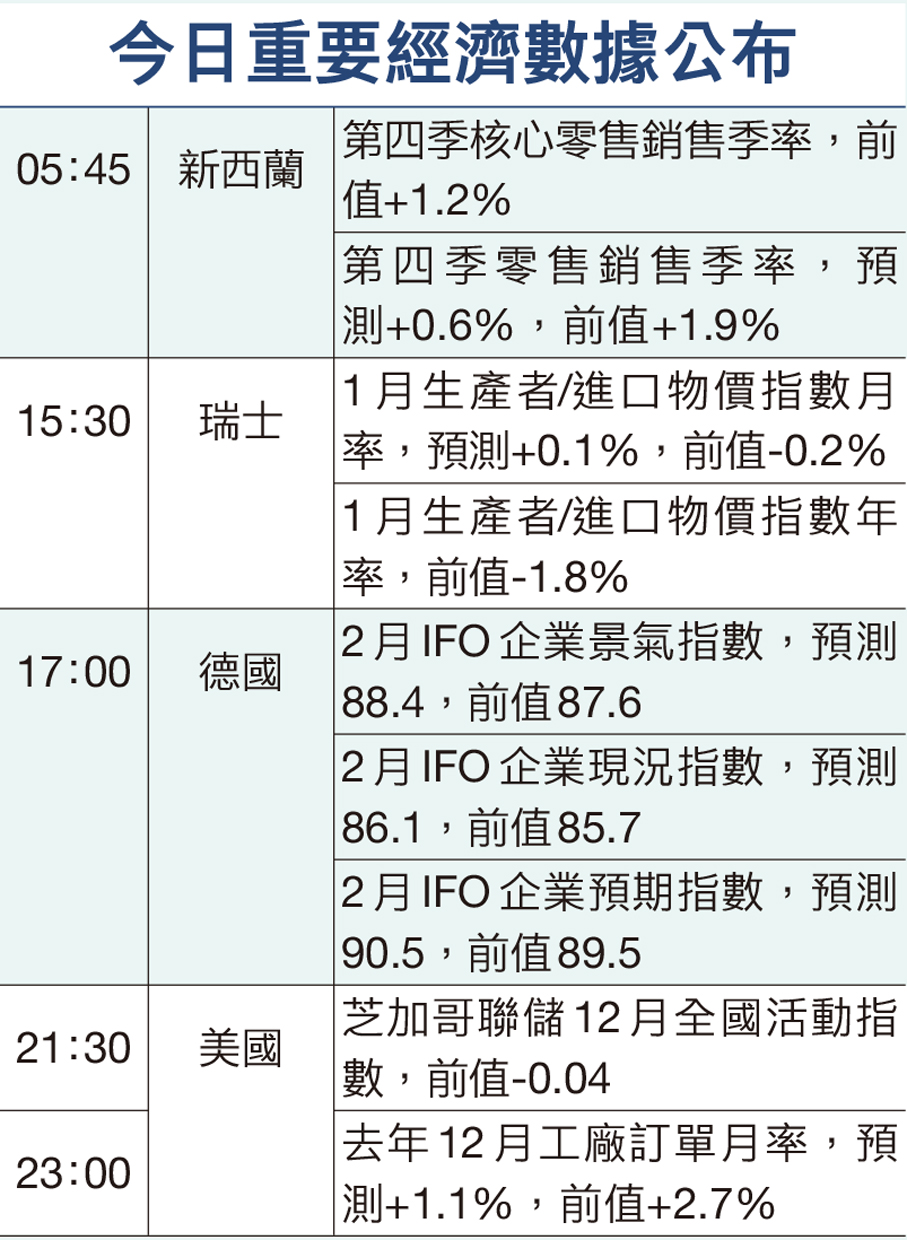 美元上周五走低,在美國公布去年12月通脹數據高過市場預期後,美元原本延續過去四日的升勢,但美國最高法院,裁定總統特朗普所謂「對等關稅」政策違法後,美元掉頭下跌。此外,美國第四季國內生產總值(GDP)環比增長年率僅為1.4%,遠低於經濟學家預估的3%增速,主要因為政府停擺對數據造成負面影響。