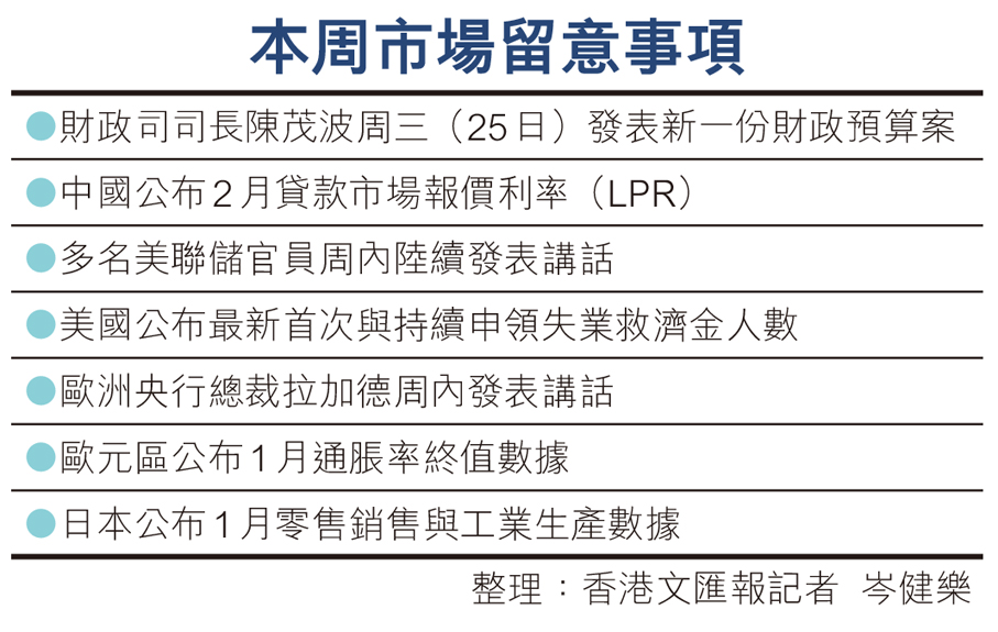 受美國最高法院的裁決所影響,上周五美股三大指數全線上升,其中道指收報49,625點,升230點或0.47%,至於標普500和納指則分別升47點(0.69%)與203點(0.89%)。至於外圍港股方面,ADR港股比例指數收報26,904點,升491點或1.83%。個股ADR亦普遍上升。其中,阿里巴巴(9988)升2.58%;騰訊(0700)升1.89%;美團(3690)升1.44%;小米(1810)升1.41%;京東集團(9618)升3.19%;至於將於本周三(2月25日)公布全年業績的滙控(0005)則升2.6%。