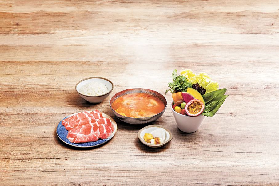 加上,新店限定的湯底,特別加入百香果提鮮,佐以大量完熟番茄碎粒與蒜香,酸甜交織,絕妙開胃。滾起後加入附上的「百香果與三色茄」,演繹出其他分店無法複製的清新旬味﹔推薦追加「三重芝士玉子雜炊」,享受自煮的儀式感,讓濃郁芝士與果酸湯底邂逅,是品嘗這道鍋物的最高享受。