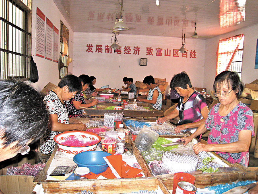 清客堂、拆豬圈,擺上幾張桌子就成了生產車間——一時間,大大小小的家庭作坊如雨後春筍般出現,形成了分水製筆產業的雛形。然而,伴隨着時間一天天過去,家庭作坊「低、小、散」的問題也逐漸顯現。2003年,時任浙江省委書記習近平到分水調研,針對製筆產業的困境,開出了16字「藥方」——「做大做強、強化特色、拓展空間、城鄉聯動」。