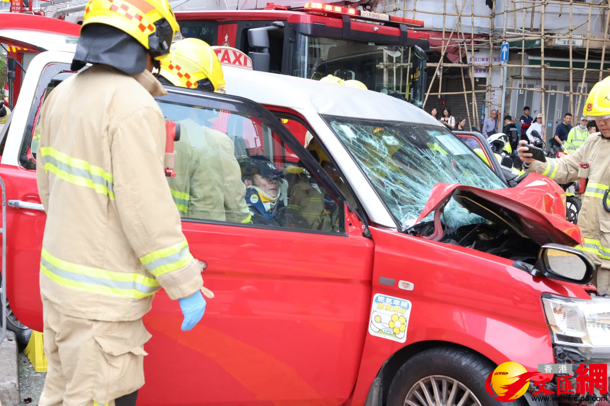 救援人員接報趕至,的士司機一度被困,需由消防救出送院。據悉涉事的士有兩成人兩小童乘客輕傷,林寶堅尼司機報稱胸口痛,全部俱清醒送院治理。