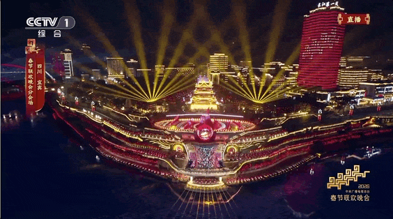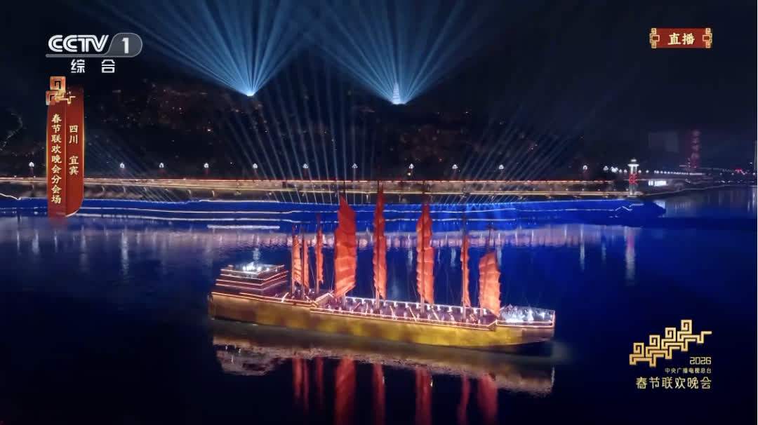 總台馬年春晚,四川宜賓分會場以「萬里長江第一城」的壯闊江景為天然舞台,以「立上游」為核心主題,年俗「請春酒」貫穿全場,向全球觀眾展示了三江六岸的獨特風光,盡顯巴蜀文化的深厚底蘊。