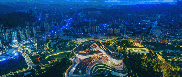 三江之眼位於龍頭山巔,是俯瞰宜賓全城的最佳觀景平台。在這裏可以白天登高望遠,夜晚看極光舞動,彷彿置身童話世界。