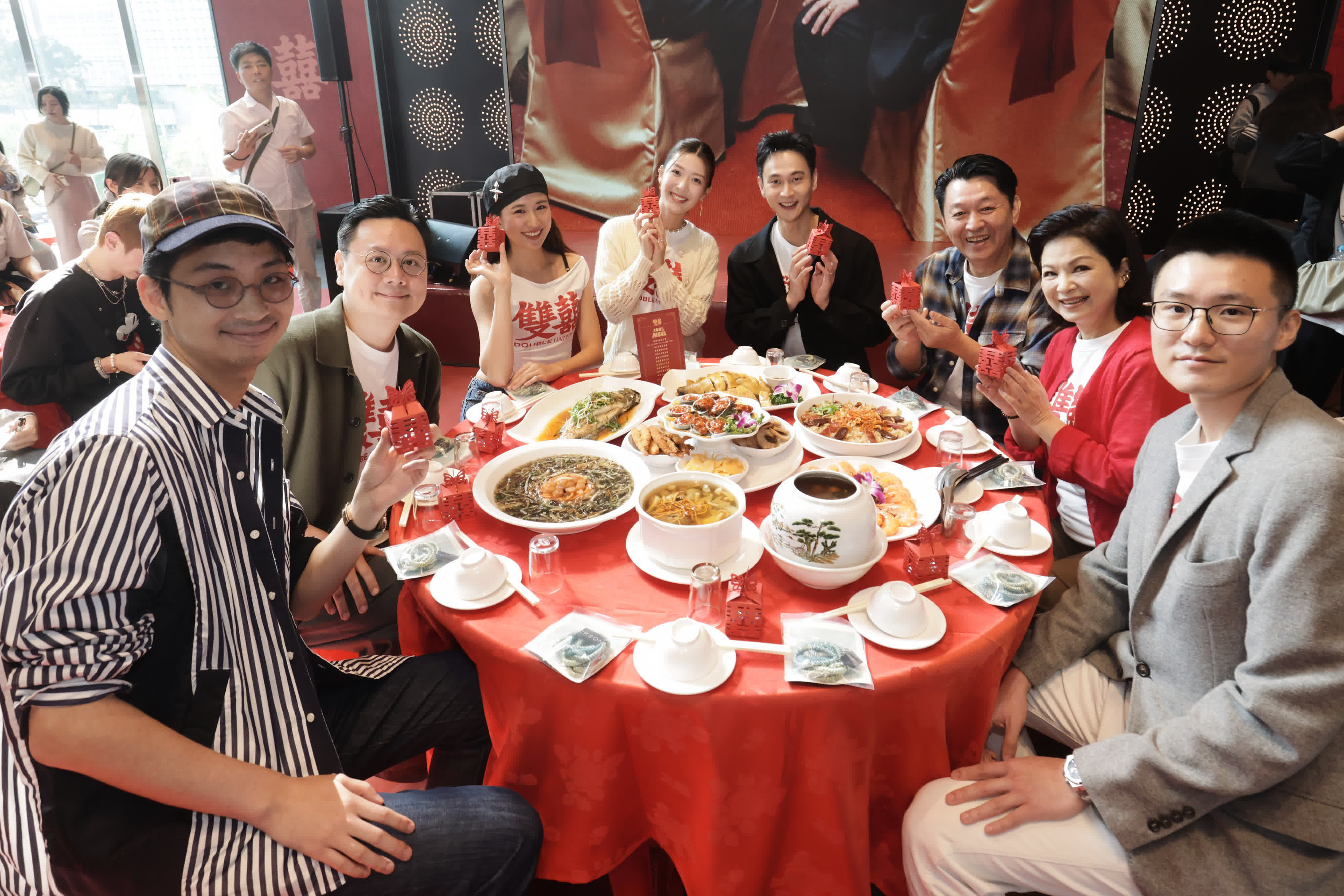 香港文匯報訊(記者 梁靜儀)劉冠廷、余香凝主演的電影《雙囍》將於大年初十(26日)在港上映,而台灣已率先於大年初一上映,更首度將「婚宴」放進戲院舉行,台北大巨蛋秀泰影城猶如變成真實婚宴現場,戲院內紅色圓桌整齊排列,筵開28席,婚禮布置延伸至所有通道和戲院大廳,囍字喜帖、婚禮明信片、婚禮小禮物也一應俱全。