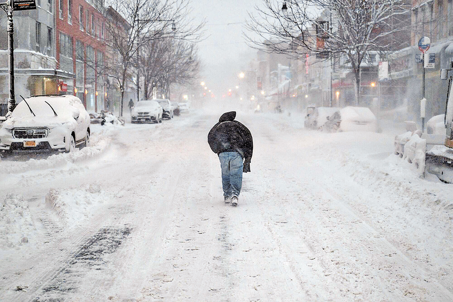 香港文匯報訊 美國東北部遭受近10年最強烈冬季風暴吹襲,估計逾5,400萬人受影響,紐約州、新澤西州、康涅狄格州、馬薩諸塞州、特拉華州及羅德島州已相繼宣布進入緊急狀態。全美22日已有逾3,500班航班取消、1.5萬班航班延誤,紐約市更下達嚴格交通禁令,應對緊急情況。