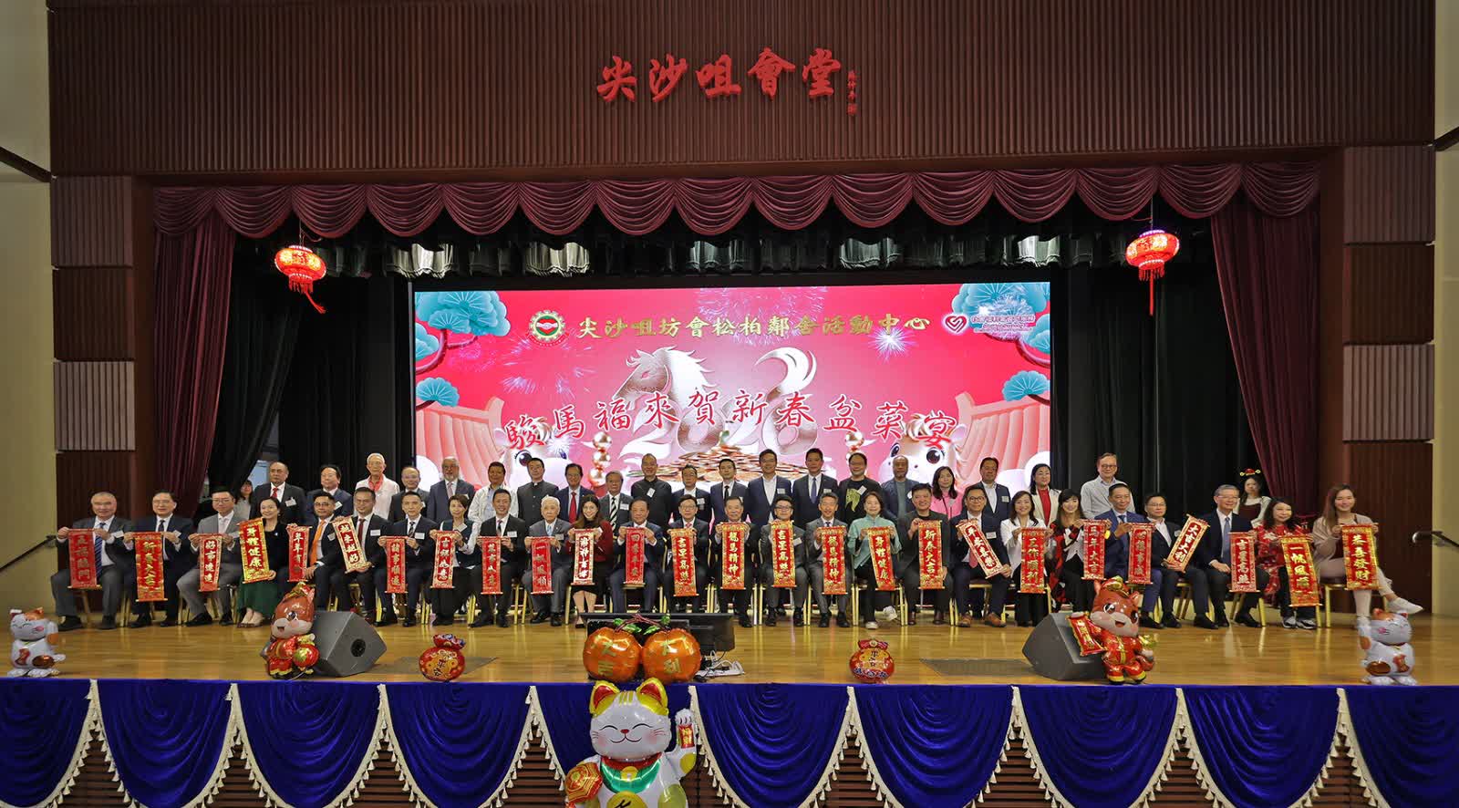 由尖沙咀街坊福利會主辦的「駿馬福來賀新春盆菜宴」於2月23日(星期一)晚上在尖沙咀會堂圓滿舉行。活動筵開五十五席,邀請區內長者共聚一堂,欣賞表演及獲贈福包,場面熱鬧歡欣,洋溢新春喜氣。