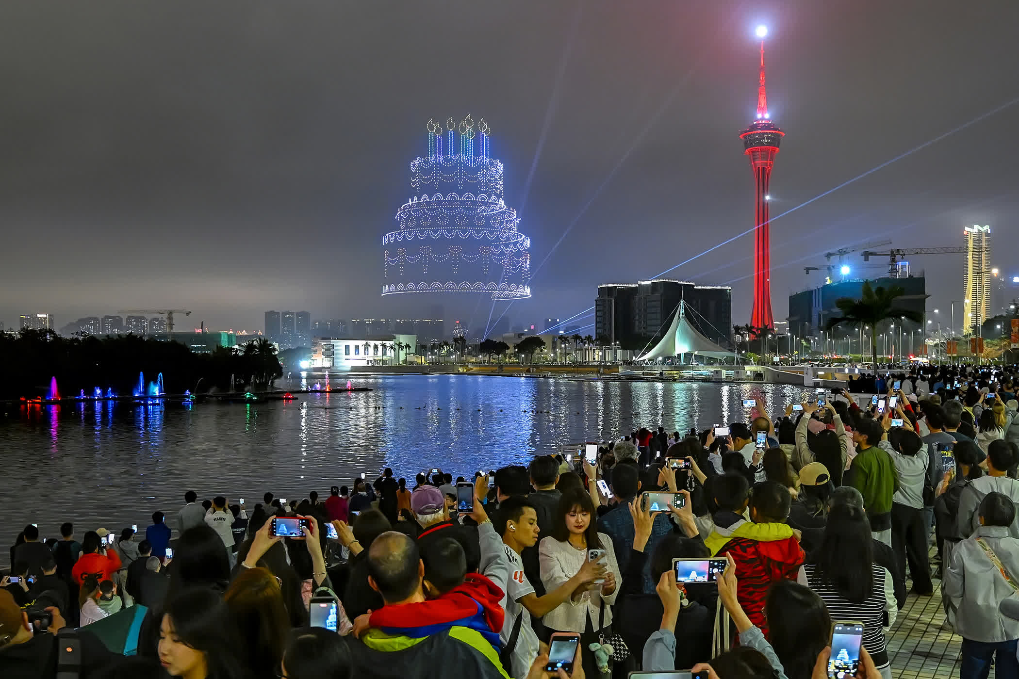 澳門新春期間仍以中區大三巴牌坊、議事亭前地一帶客流最多,市面春節氣氛熱鬧濃厚,同時舉辦花車匯演、無人機煙花等活動賀新禧,吸引大批旅客訪澳,感受節日氣氛。來自中山旅客陳小姐來澳兩天一夜,再計劃從港珠澳大橋前往香港遊玩,她表示,從網上得知澳門有多項新春活動,因此來澳門度新歲,預計消費3000元左右。「澳門新春氣氛很熱鬧,很喜歡無人機煙花,很有新鮮感。」