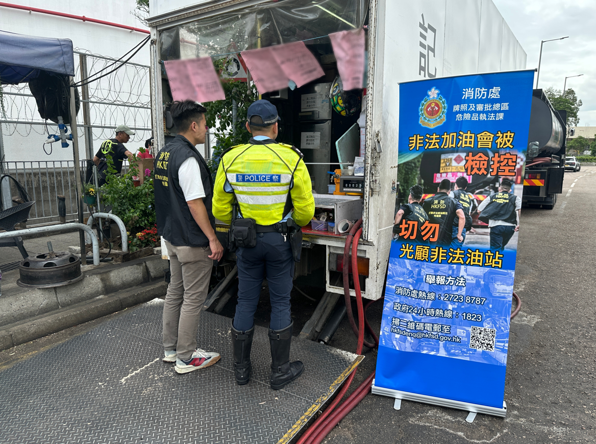 三項全新策略:第一,在「火警危險電子投訴平台」增設「油擊」舉報眼專區,並設立24小時舉報熱線,鼓勵市民舉報,建立全民監察網絡,其間接獲86宗舉報;第二,利用無人機進行高空巡邏,加強巡查非法加油站黑點,並將巡邏範圍擴展至偏遠地區,其間進行了51次巡邏;第三,成立「打擊非法燃油轉注活動策略小組」,促進政府部門之間,以及與業界的溝通協作,並共同制定應對策略。