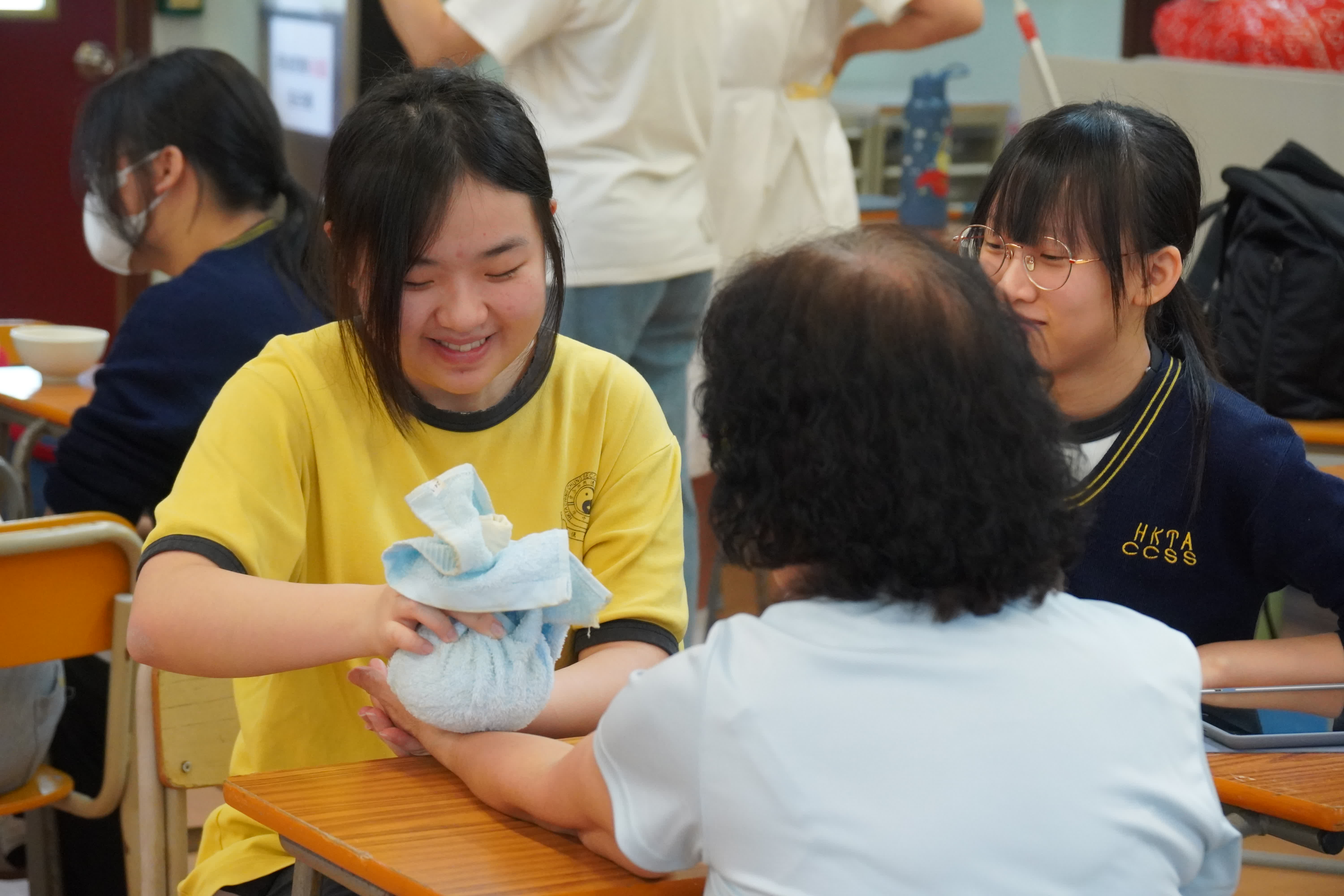 該校本課程讓同學主動參與、親身體驗,並從中學習。中五同學透過組織長者義工服務,為長者舉辦歷奇活動、精油按摩及新興運動體驗,豐富他們的生活;而學生亦可透過參與義工培訓課程、輪椅體驗、照顧者真人圖書館及軟餐製作工作坊等活動,培養同理心與社會責任感。此外,教師亦帶領中四學生探訪觀塘區清潔工人,聆聽其工作故事並致送自製福袋,表達敬意與關懷。學生更親自參與街道清理工作,深入體會勞動者的辛勤付出。