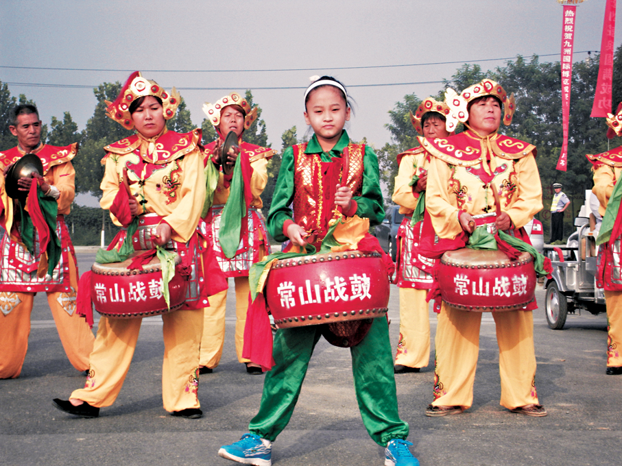 「以前都說敲鼓是男人的事,現在女人照樣能把戰鼓敲得震天響!」正定縣東楊莊村的排練場上,一群女子手持鼓槌,動作整齊劃一,鼓聲鏗鏘有力。「男人做得到的事,女人都能做到。」抱着這樣的信念,張書社上世紀九十年代組建了第一支女子戰鼓隊。