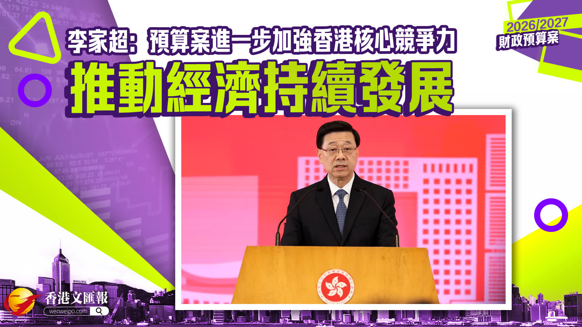 香港文匯報訊(記者 蕭景源)行政長官李家超今日(25日)就2026至27年度《財政預算案》發表聲明指,財政司司長今日發表的本屆政府第四份《財政預算案》,提出一系列創新而務實的措施,進一步實踐《施政報告》的方針,主動對接國家「十五五」規劃,通過創科和金融賦能香港多元化發展,同時照顧市民所需,惠及民生。預算案積極從「AI+」和「金融+」兩條主線推進,提升產業發展,打造國際高端人才集聚高地,進一步加強香港的核心競爭力,增強經濟動能,扎實推動香港經濟提速增量、持續發展。