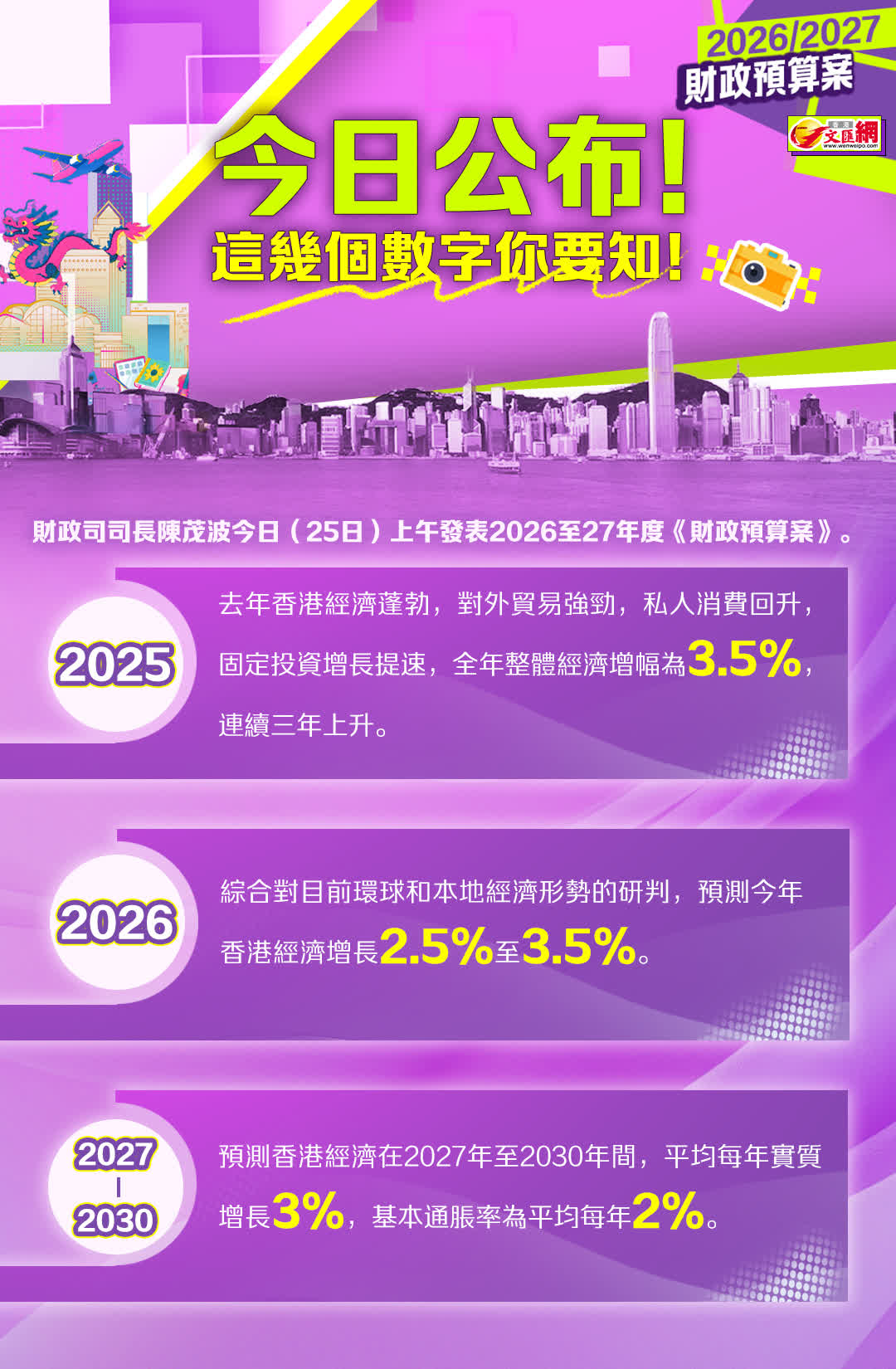財政司司長陳茂波今日(25日)上午發表2026至27年度《財政預算案》。