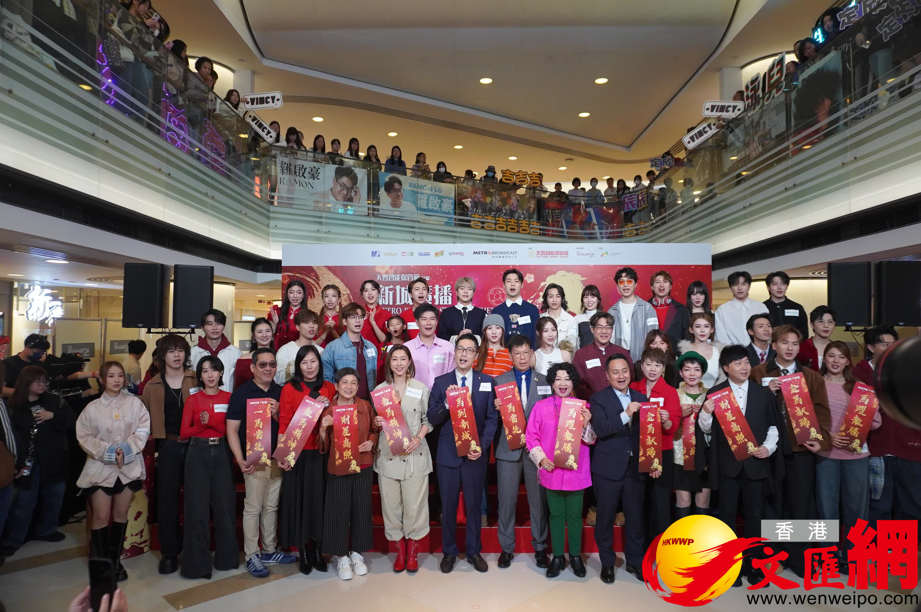 香港文匯報訊(記者 子棠)「新城廣播新春團拜」暨節目巡禮於今日(大年初九)舉行,行政總裁馬浚偉率領一眾管理層、台長及節目主持人出席,並聯同「鎮台之寶」薛家燕、嘉賓胡定欣等主持醒獅點睛儀式。現場更邀請了周吉佩(吉吉)、張與辰、泳兒、曾比特、鍾柔美、詹天文等數十位歌手到場,齊向在場人士拜年,吸引大批粉絲圍觀,場面熱鬧。
