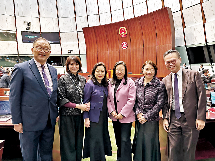 新一份財政預算案封面顏色為紫色,財政司司長陳茂波指,紫色代表優雅與魅力、冷靜與堅持,寓意在瞬息萬變的外部環境中,本港經濟內生動力不斷增強,亦意味着人們對幸福的期盼。多位特區政府主要官員和立法會議員昨日在穿搭上盡顯巧思,配合紫色元素形成視覺上的「隊形」,展現團結的同時以示對預算案的支持。