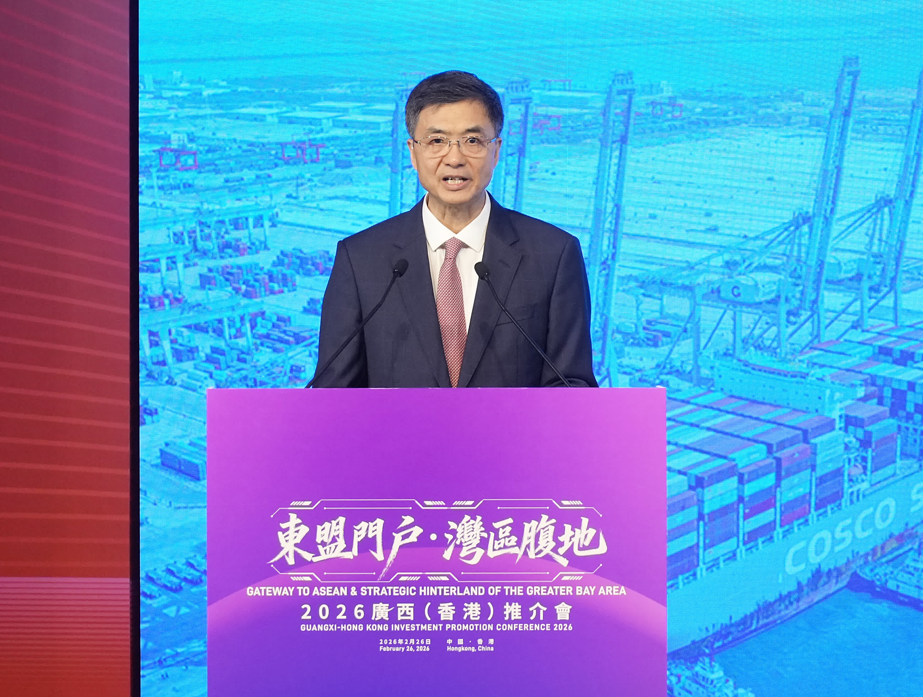 (香港文匯網記者 李樂兒)「東盟門戶·灣區腹地─2026 廣西(香港)推介會」今日在港舉行,廣西壯族自治區黨委書記、自治區人大常委會主任陳剛率團訪港,並在推薦會上致辭表示,期盼雙方共同深化現代化產業合作,共建跨境產業鏈,共促金融與服務互通,廣西願意積極引入香港法律會計、諮詢等專業服務,為兩地企業深耕東盟保駕護航,共同服務構建更為緊密的中國一東盟命運共同體。